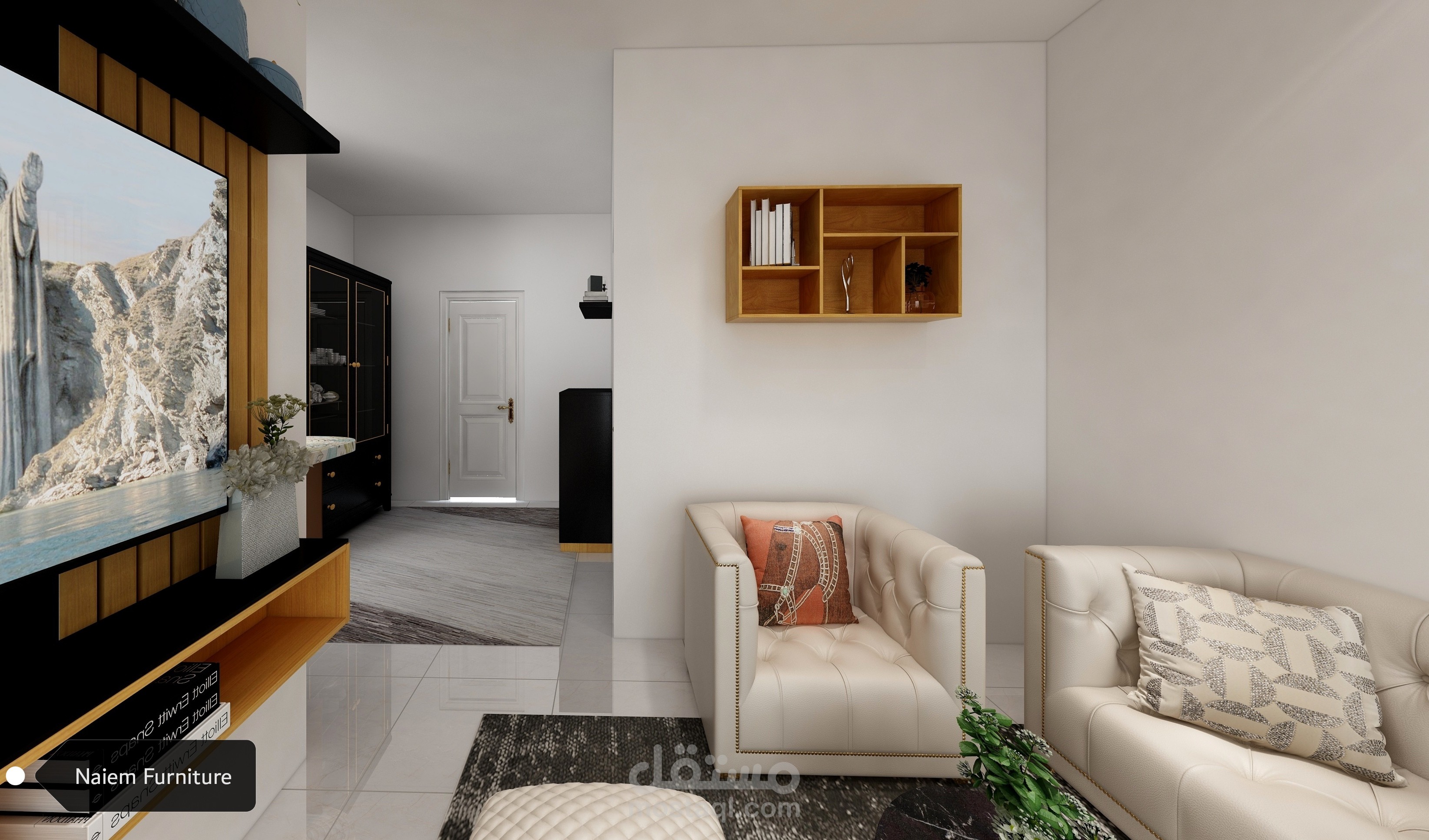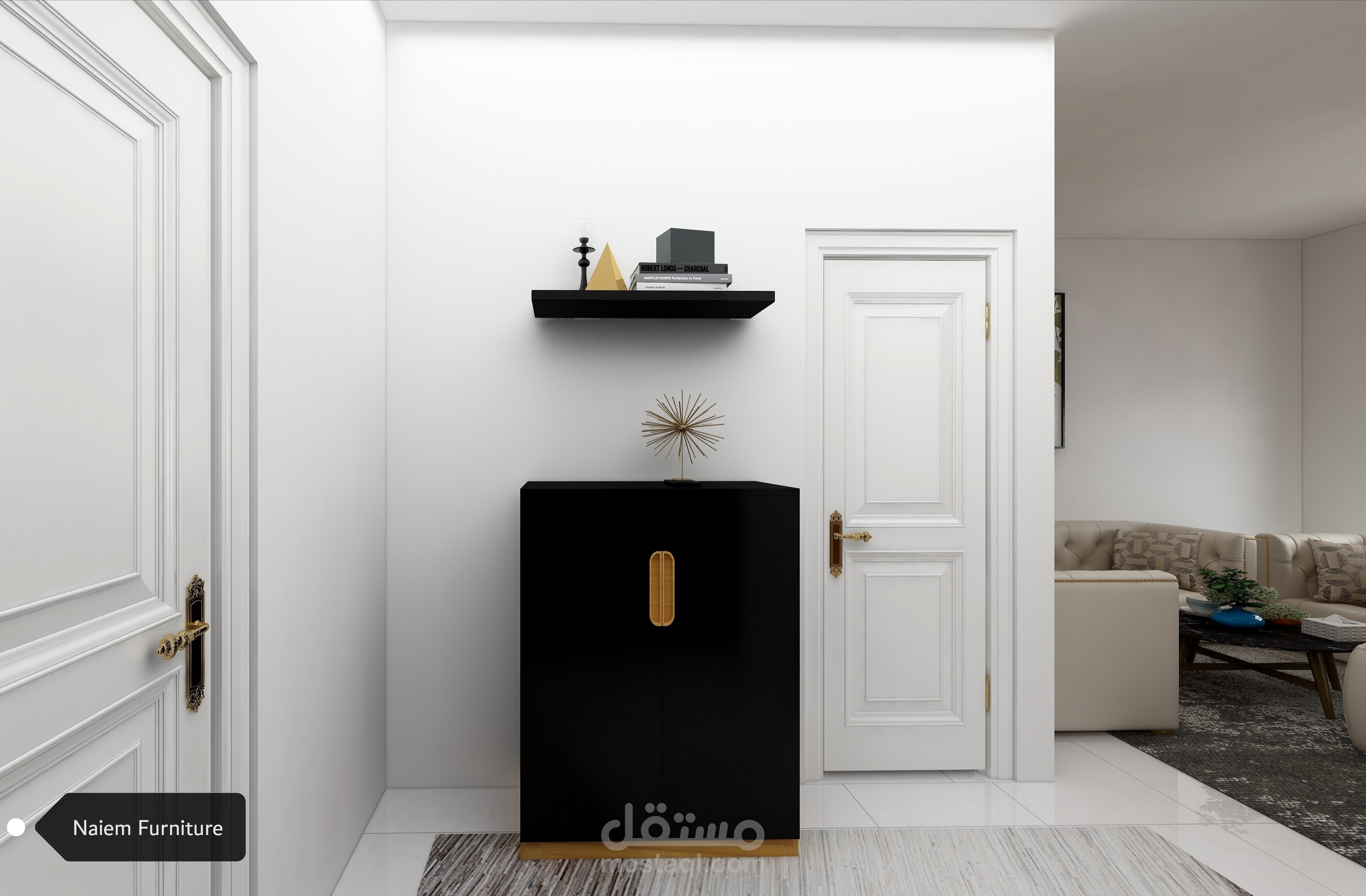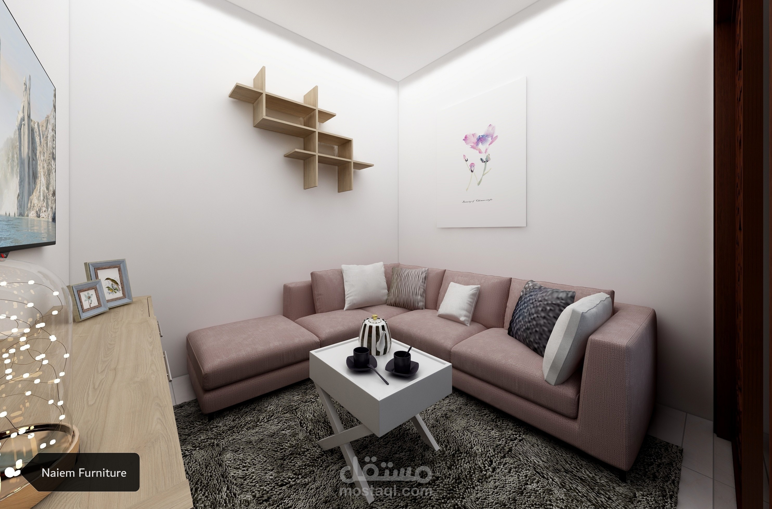 هذا العمل تصميم 3d تجريبي لشقة 80 متر كاملة ومكونة من مدخل شقة و رسبشن وغرفة معيشة و ٢ حمام ومطبخ اقتصادي متوسط الحجم وغرفة نوم رئيسيه وغرفة نوم أطفال وكل ذلك بألوان متناسقه