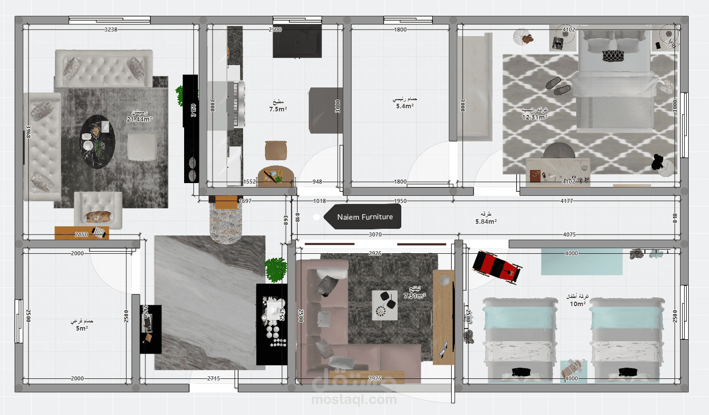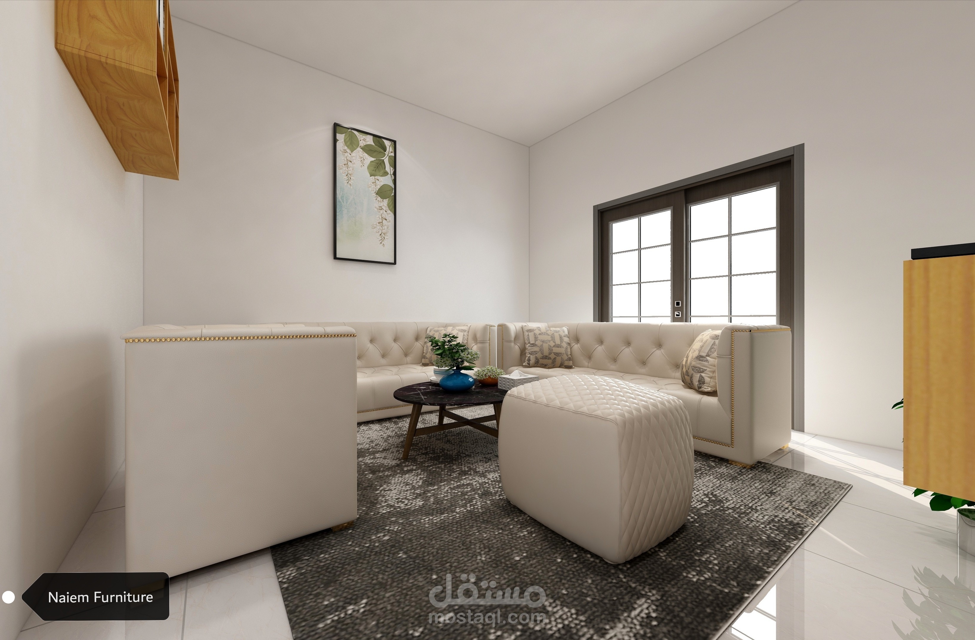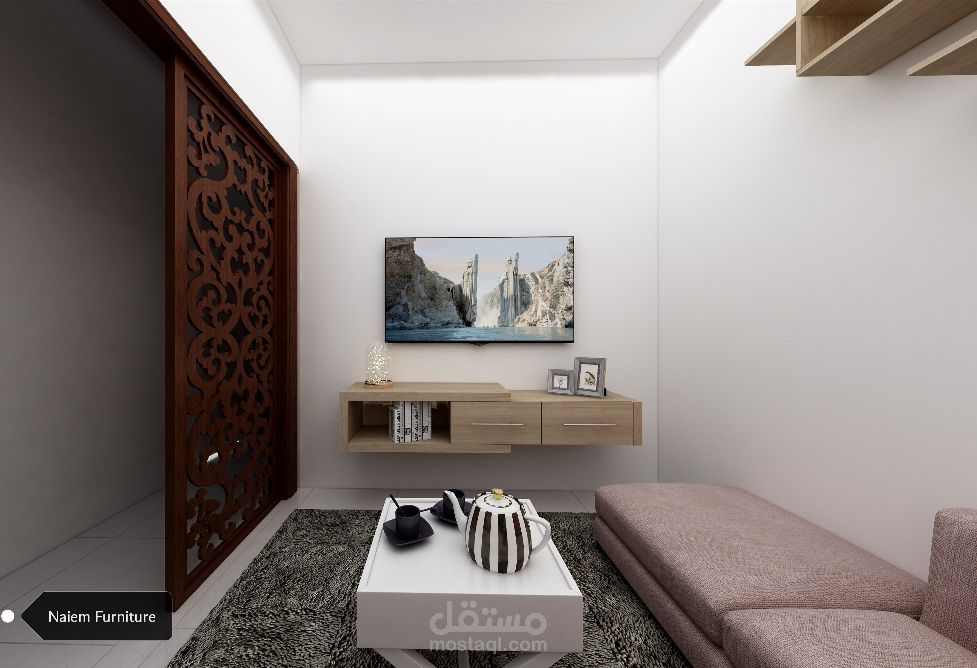 هذا العمل تصميم 3d تجريبي لشقة 80 متر كاملة ومكونة من مدخل شقة و رسبشن وغرفة معيشة و ٢ حمام ومطبخ اقتصادي متوسط الحجم وغرفة نوم رئيسيه وغرفة نوم أطفال وكل ذلك بألوان متناسقه