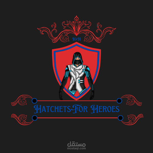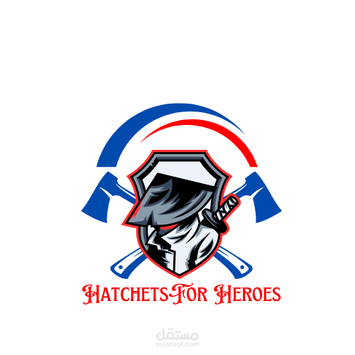 Hatchets For Heroes i used a character of a hero and inserted a htchet behind the charachter i used red and blue to refer to strength in the logo