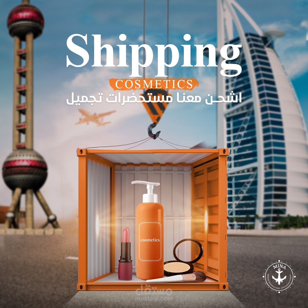 قمت بتصميم إعلانات متعددة تسلط الضوء على خدمات الشحن والتوصيل التي تقدمها الشركة.