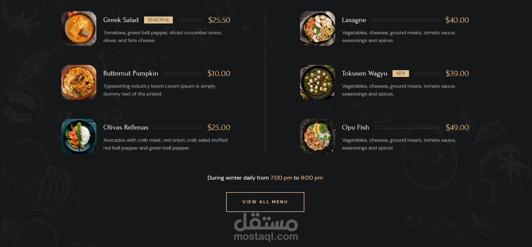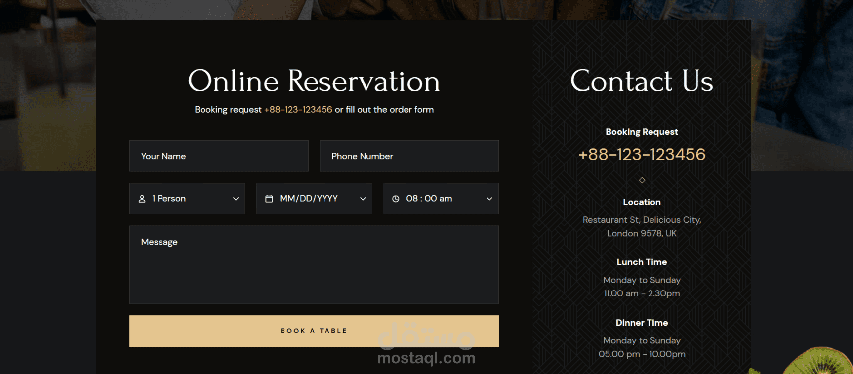 - تصميم وتطوير موقع ويب جذاب بصرياً لقائمة المطعم.