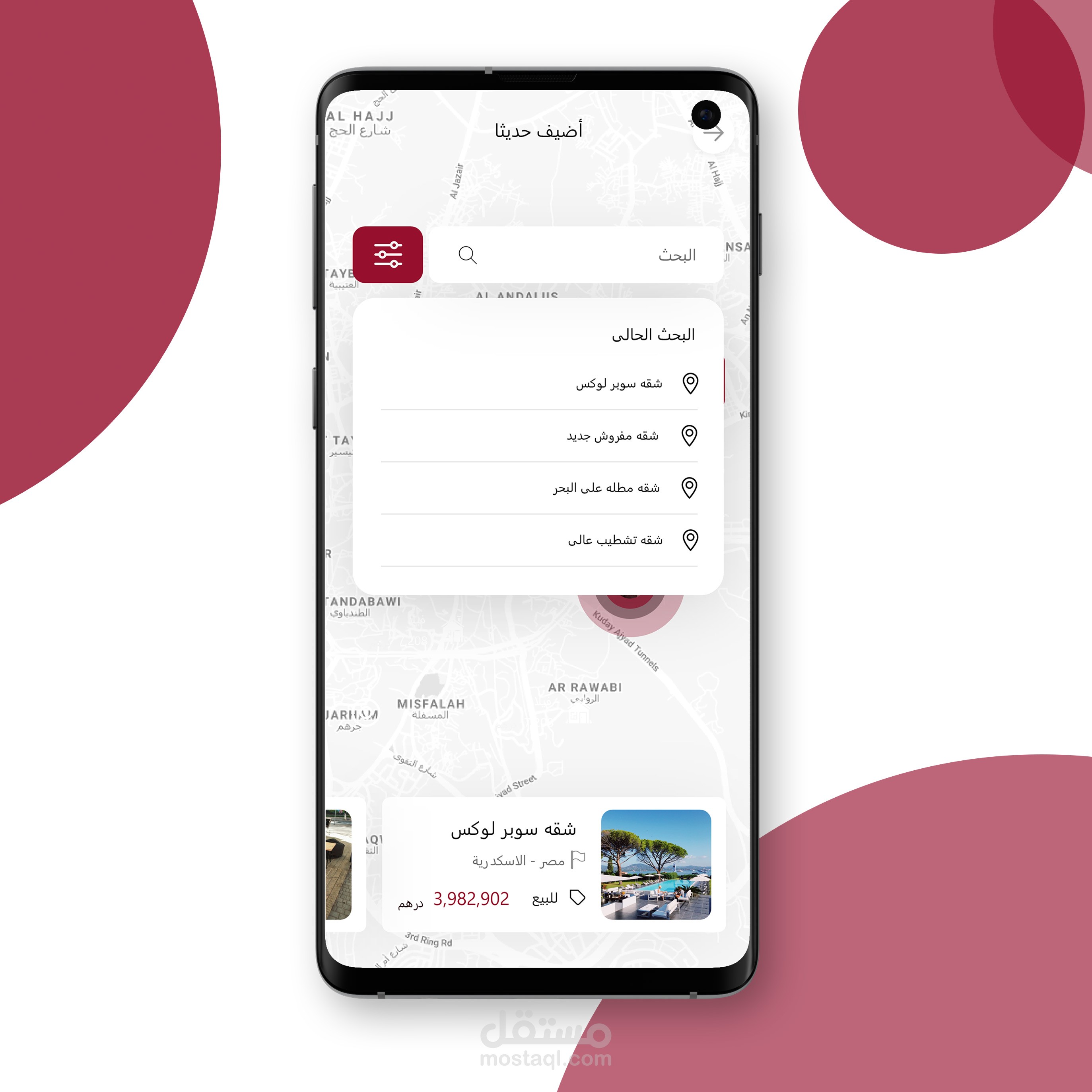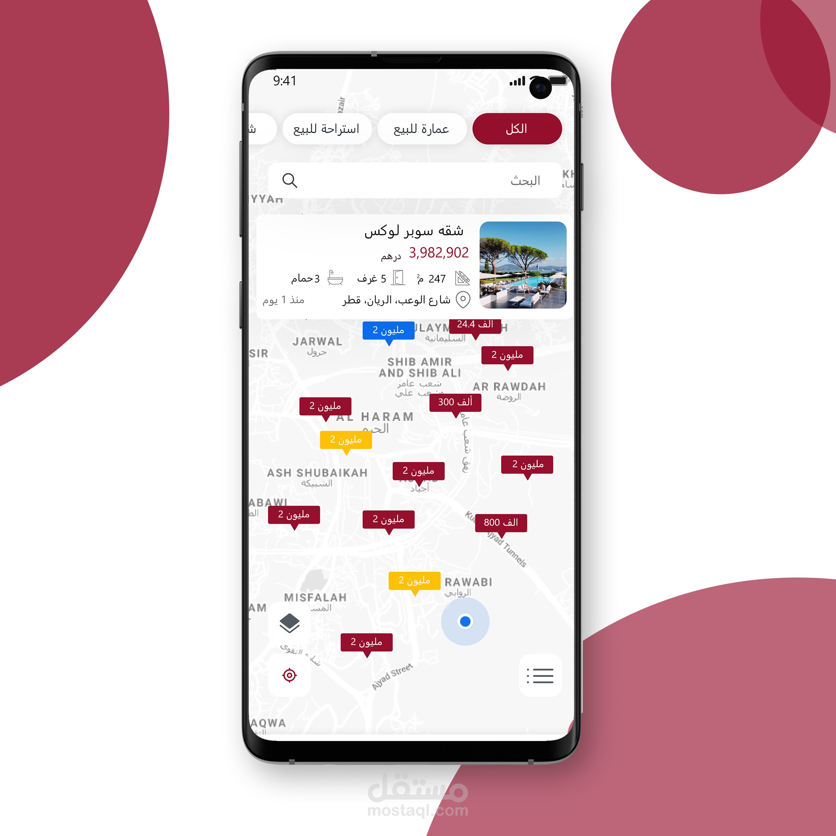 ٥- ميزة البحث الدقيق عن السعر والمساحة وعدد الغرف وغيرها .