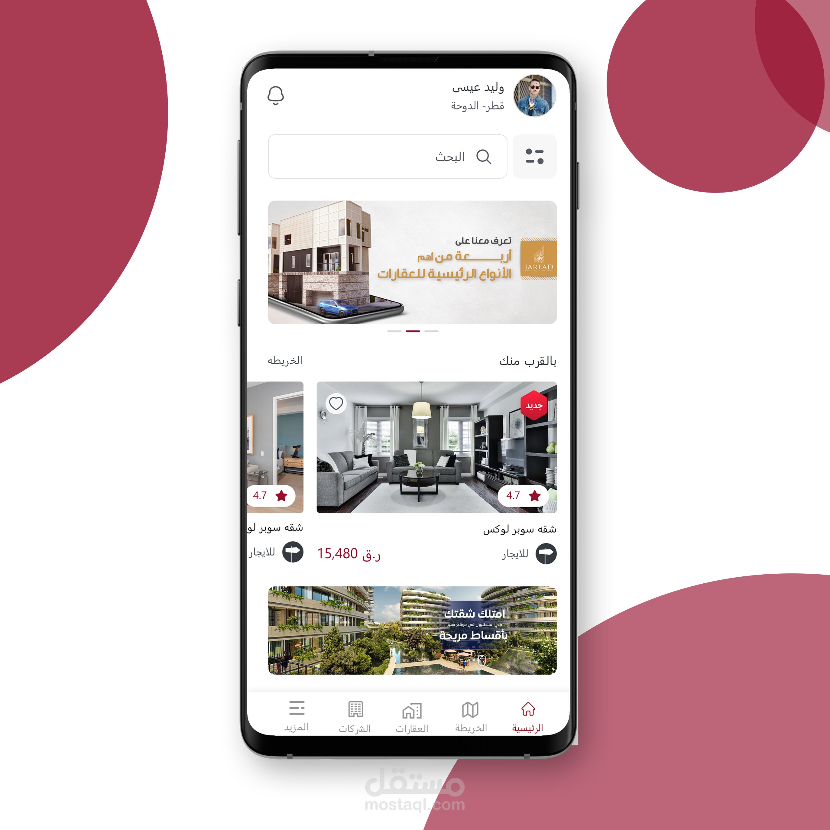 عقار قطر .. تطبيق بإدارة قطرية لعرض العقارات في دولة قطر وخارج دولة قطر .. وهو يجمع اصحاب العقارات اوالشركات لعرض عقاراتهم في التطبيق