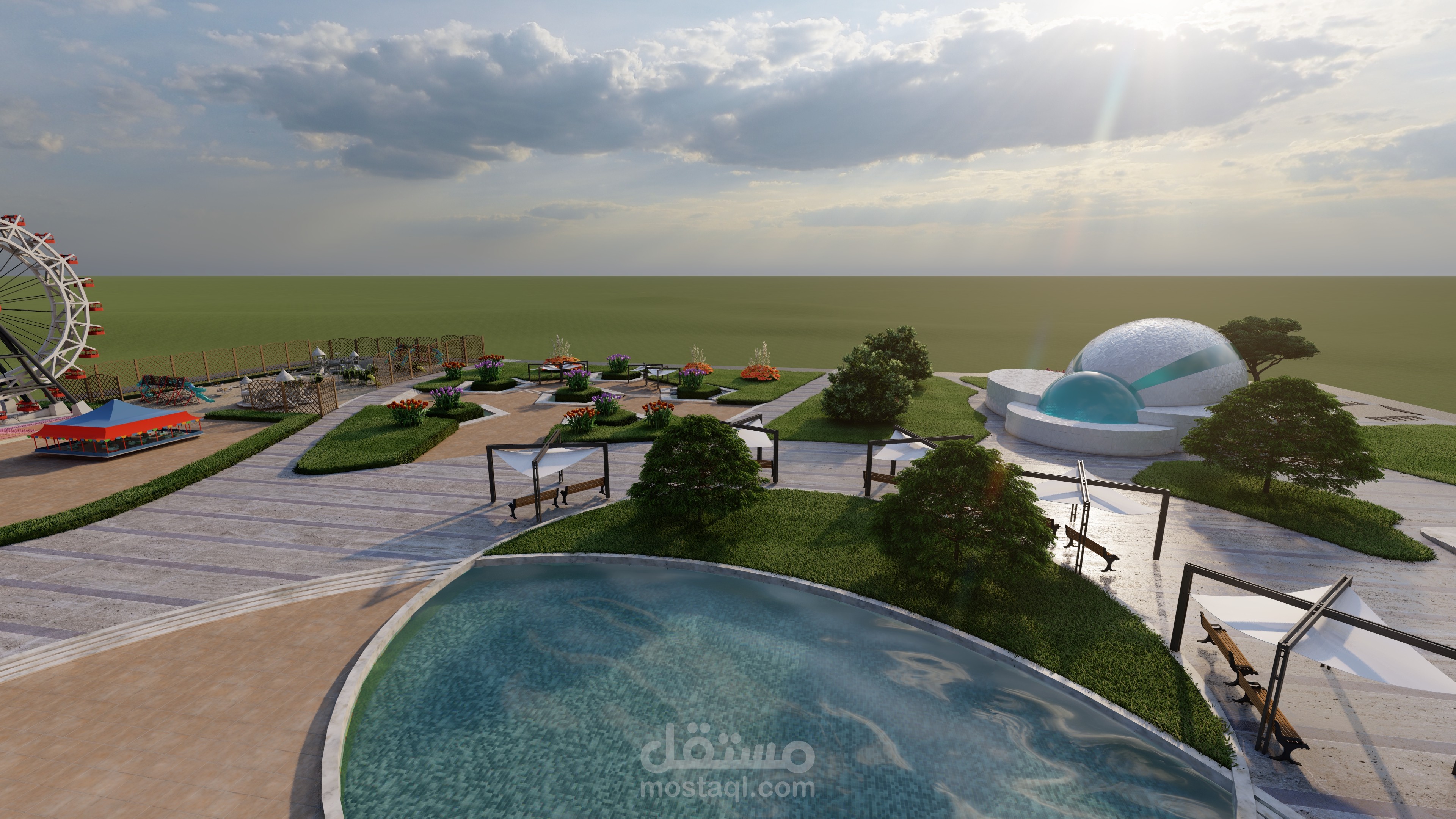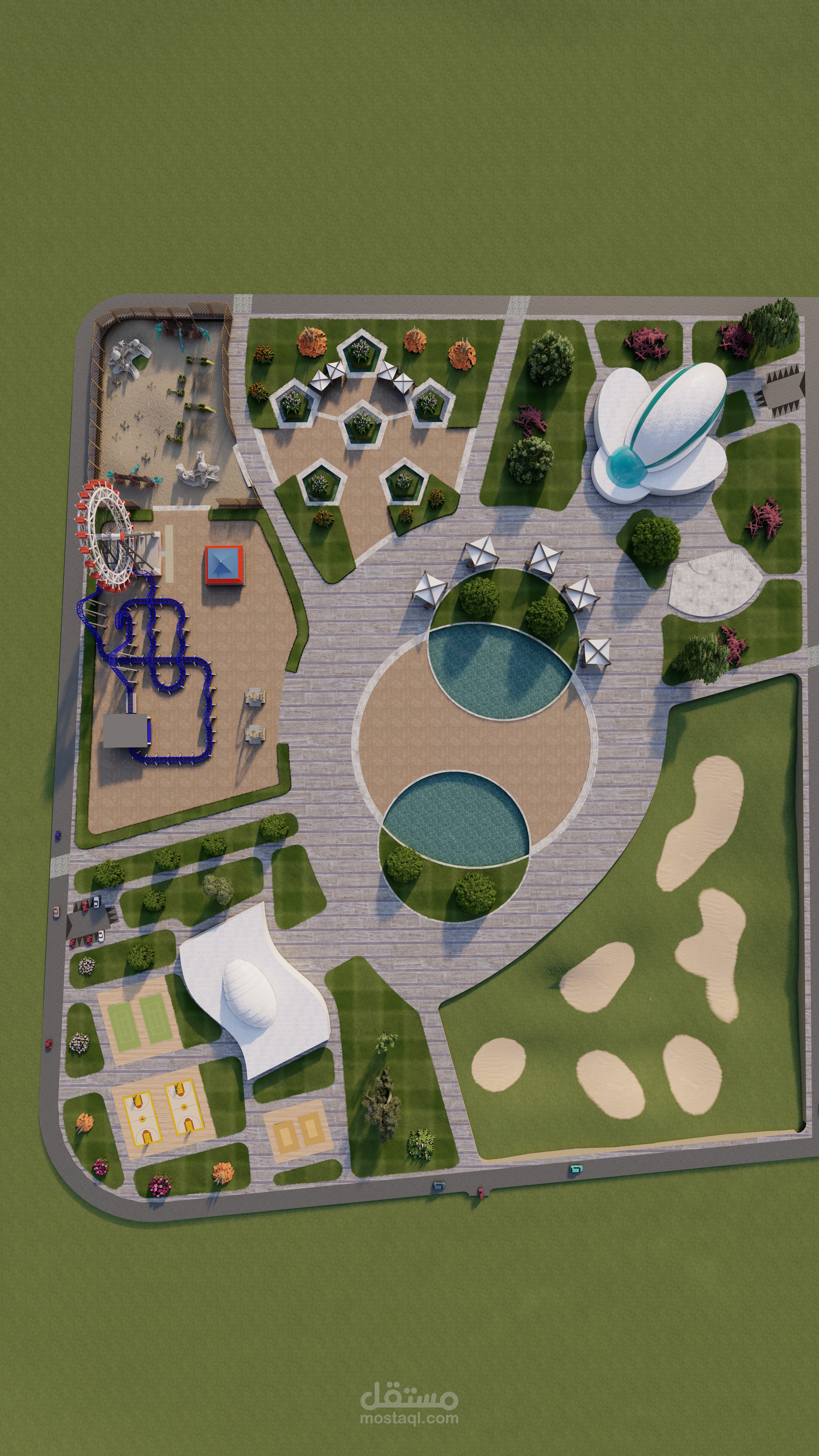 تصميم landscabe خاص بمشروع رياضي ترفيهي