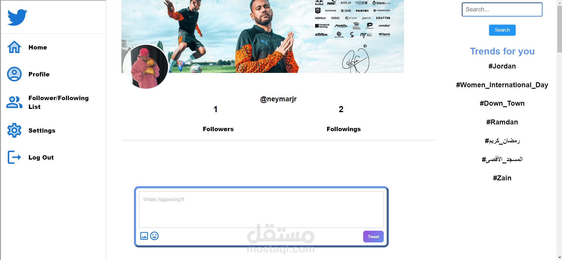 موقع شبيهبتويتر يمكنك فيه اضافة اشخخاص الى قائمتك و التفاعل مع المنشورات واضافة منشور