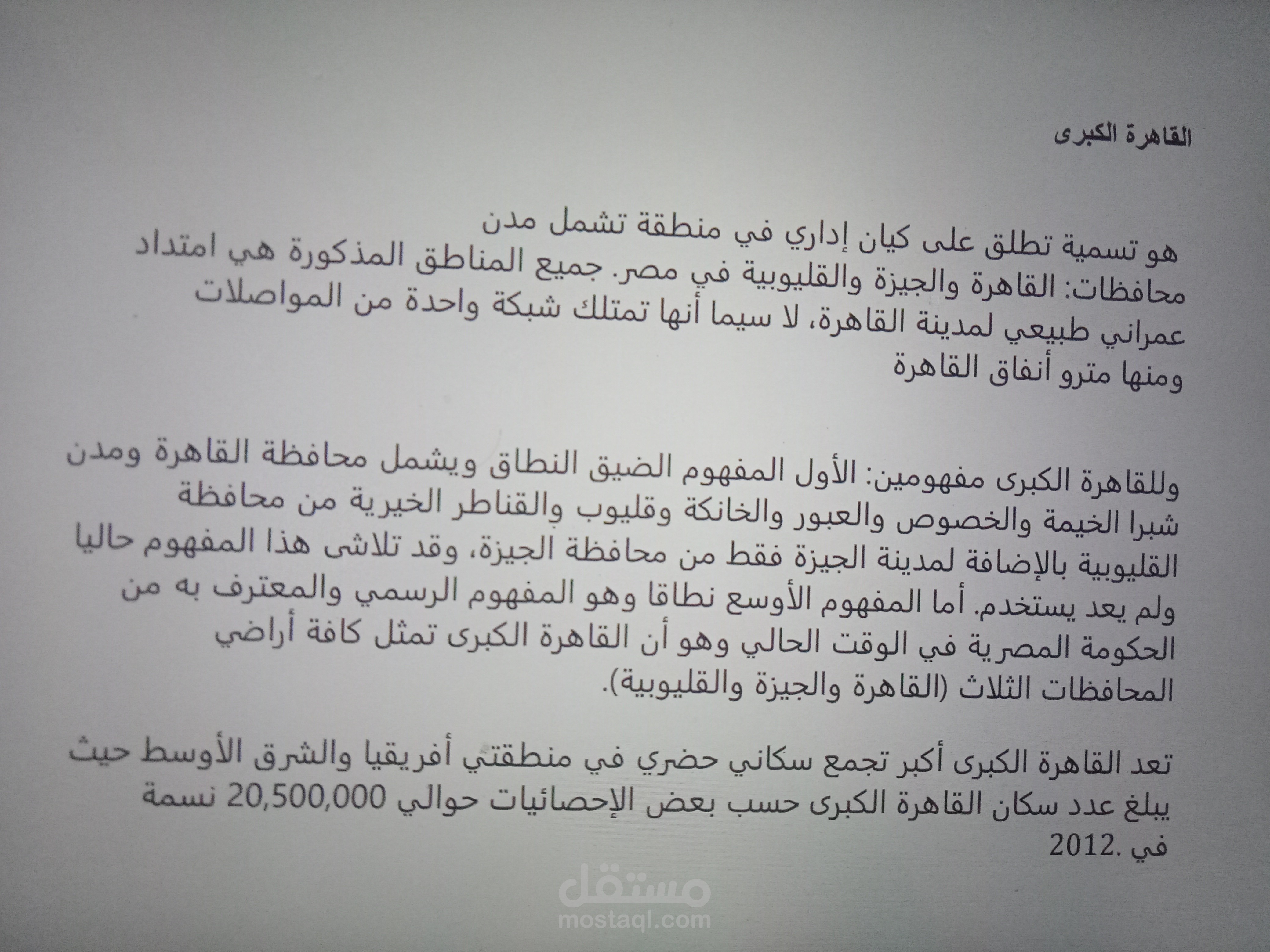 بحث وافي و شامل عن القاهرة الكبري في مصر