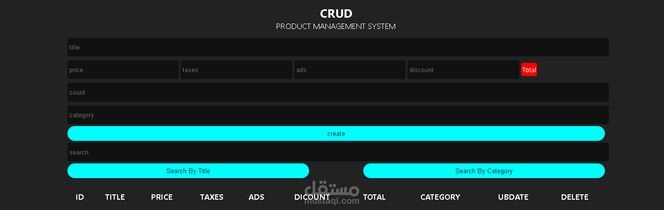 The CRUD Product Management System demonstrates my expertise in front-end web development, combining HTML, CSS, Bootstrap, and JavaScript to create a robust and user-friendly solution for managing products. Whether accessed on a desktop, tablet, or mobile phone, the system provides an intuitive interface with CRUD functionalities, empowering users to efficiently manage product data. This project showcases my ability to create functional and responsive web pages using industry-standard technologies, delivering a seamless and efficient product management experience.
