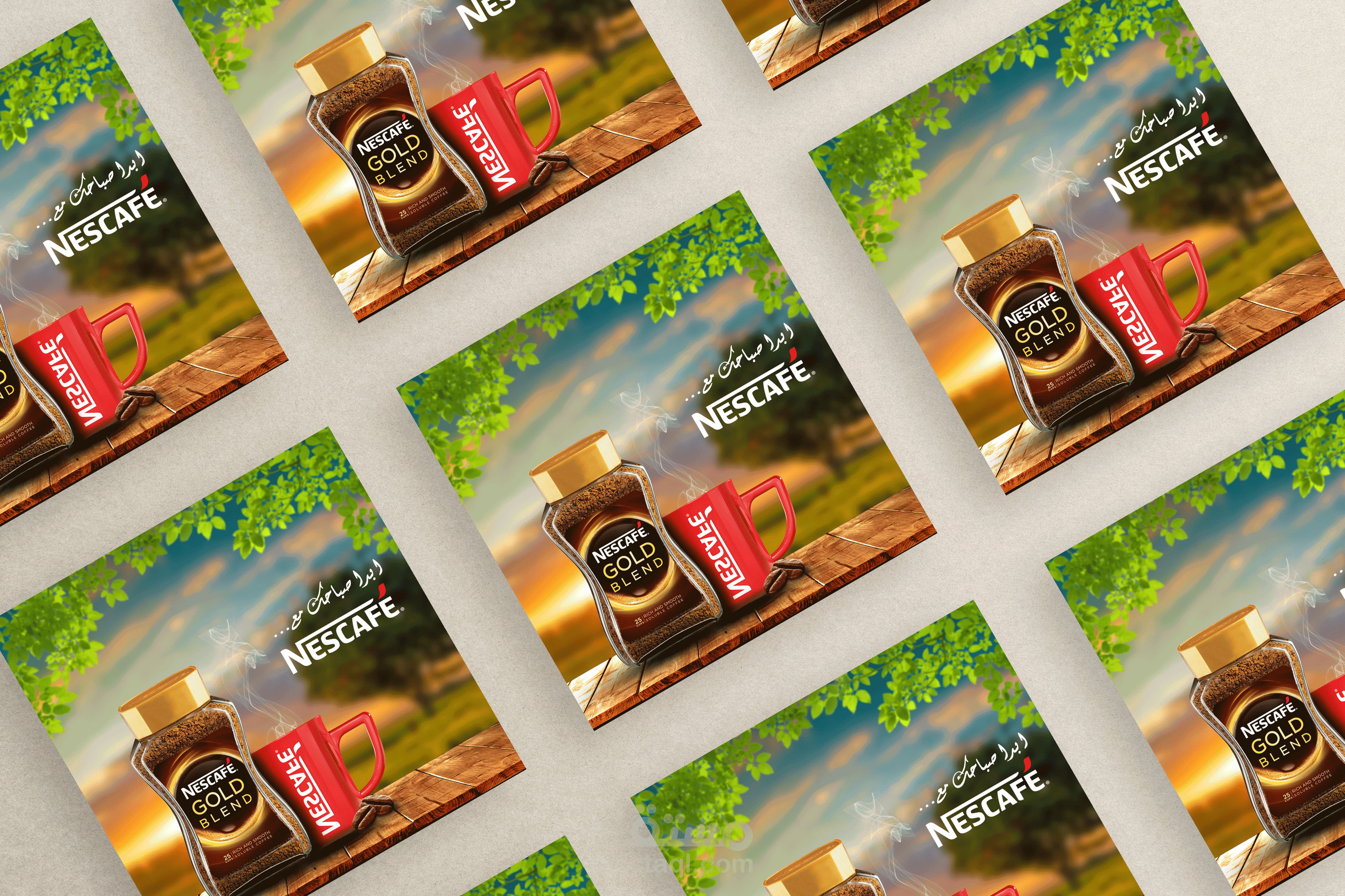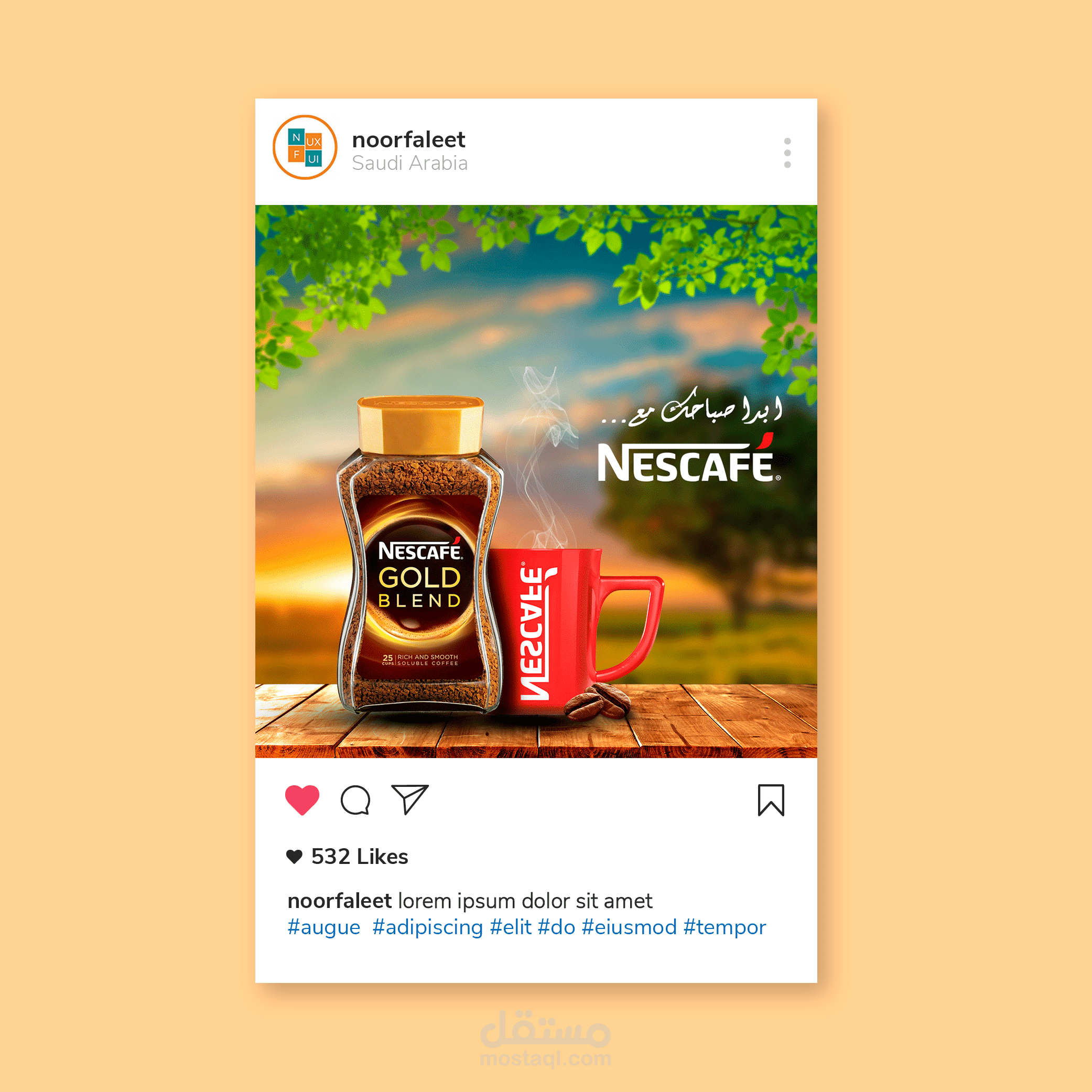 تصميم سوشيال ميديا لمشروب نسكافيه جولد اللذيذ.