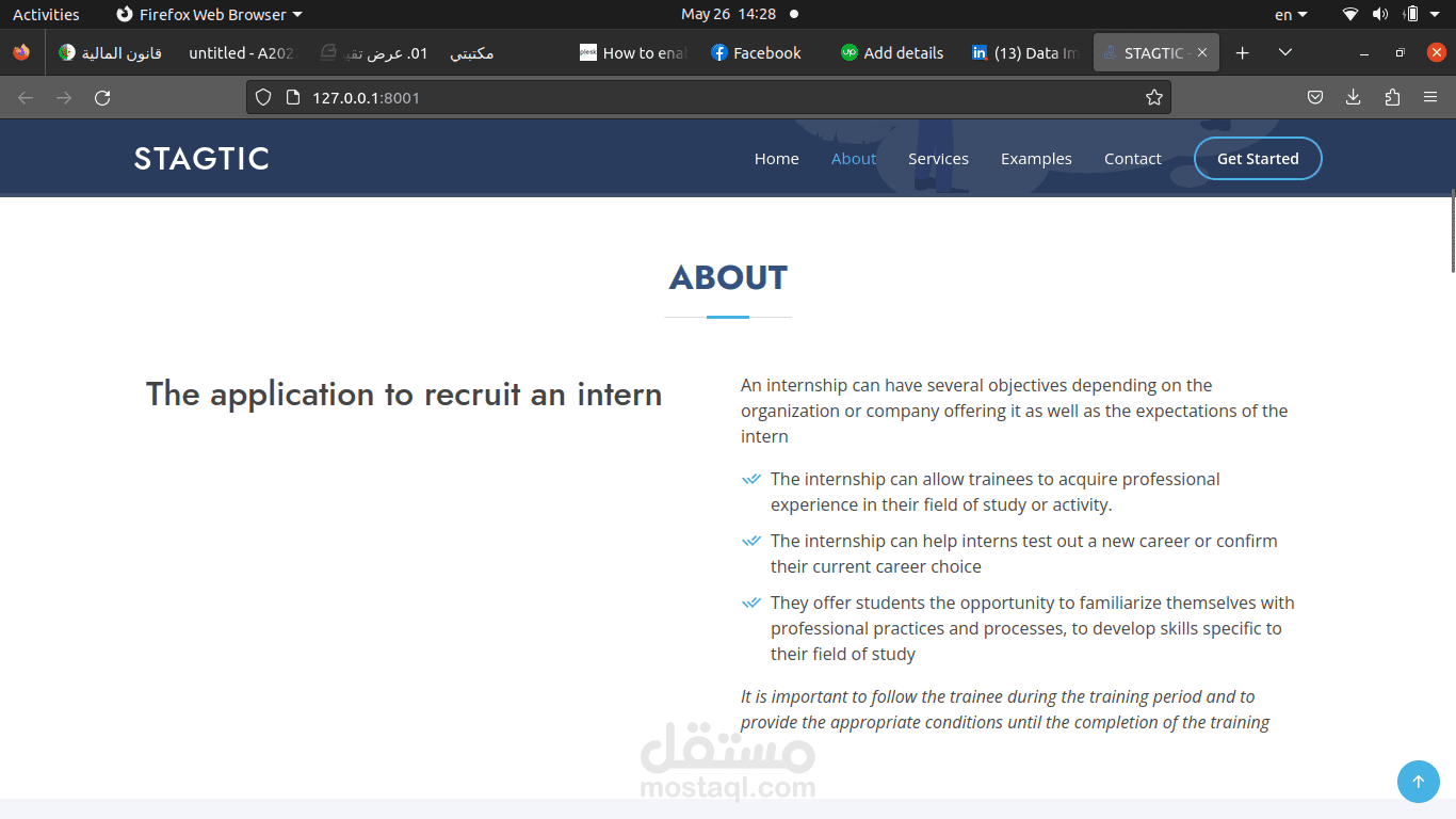 كنت مطور الواجهة الخلفية المسؤول عن مشروع التدريب الداخلي