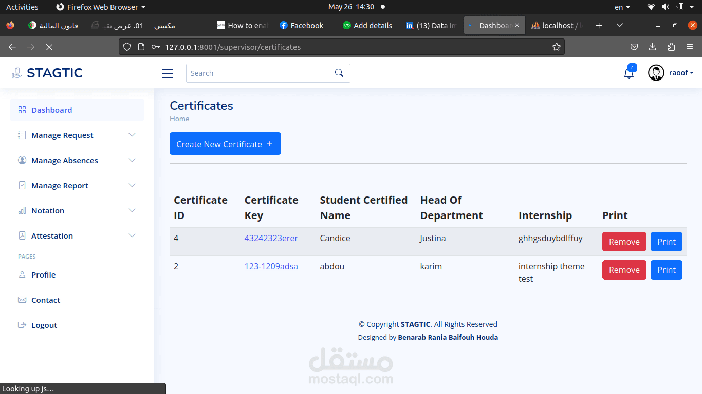 القدرة على إظهار جميع الشهادات وتعديلها / إزالتها من قبل مشرف التدريب
