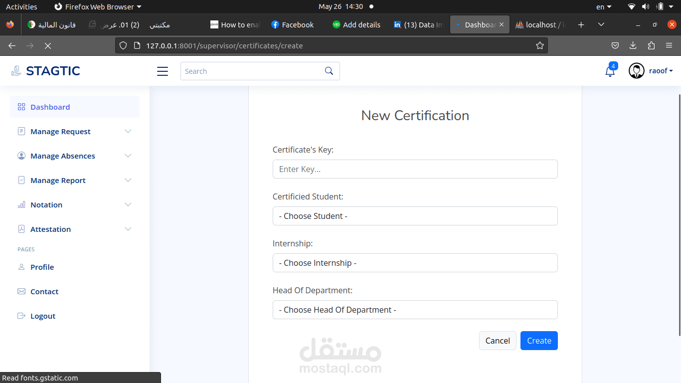 تكمن المشكلة في إضافة وظائف إلى قسم الشهادات بموقع التدريب الداخلي.