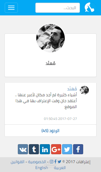 كما يوفر خاصية الإعترافات العامة حيث يبوح الشخص بما كان يخفيه سابقا يتحصل على ردود و تفاعلات من اشخاص اخرين (مع إمكانية تفعيل خاصية المجهول دائما) ... أدع لكم إكتشاف تفاصيل الموقع من خلال رابط العمل