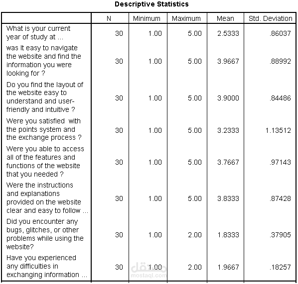 تحليل بيانات استبيان حول استخدام نظام جديد