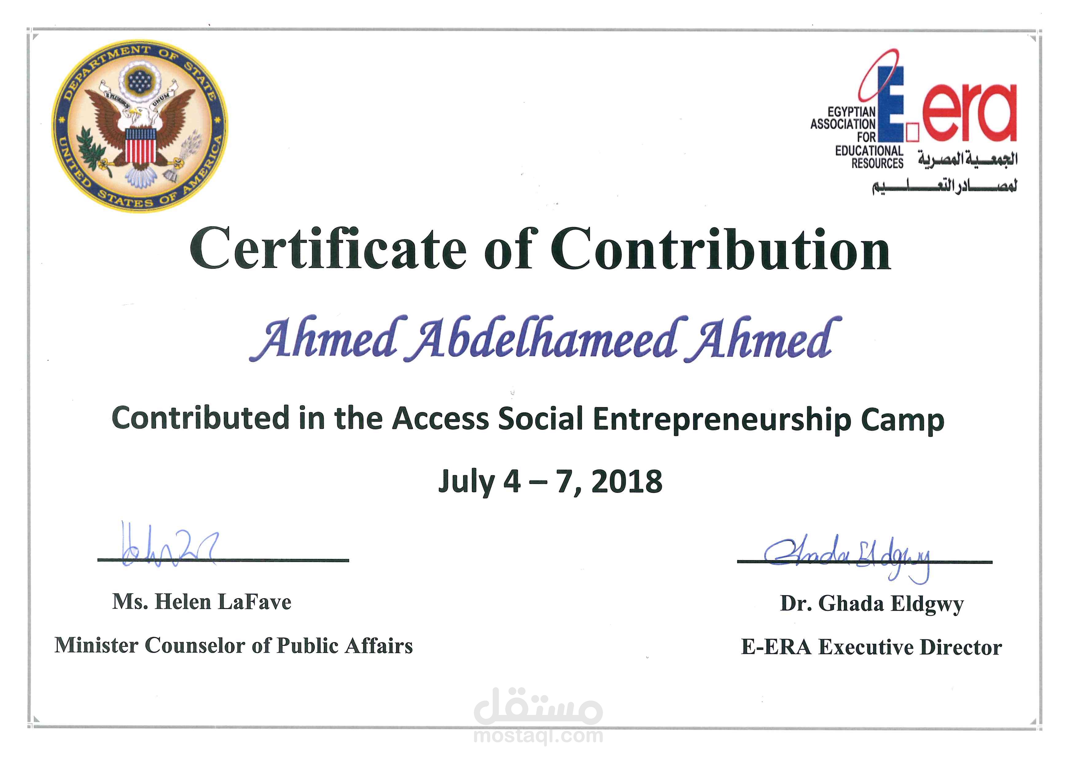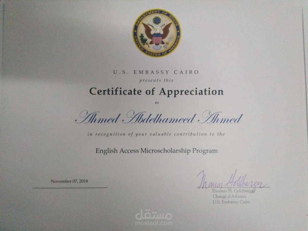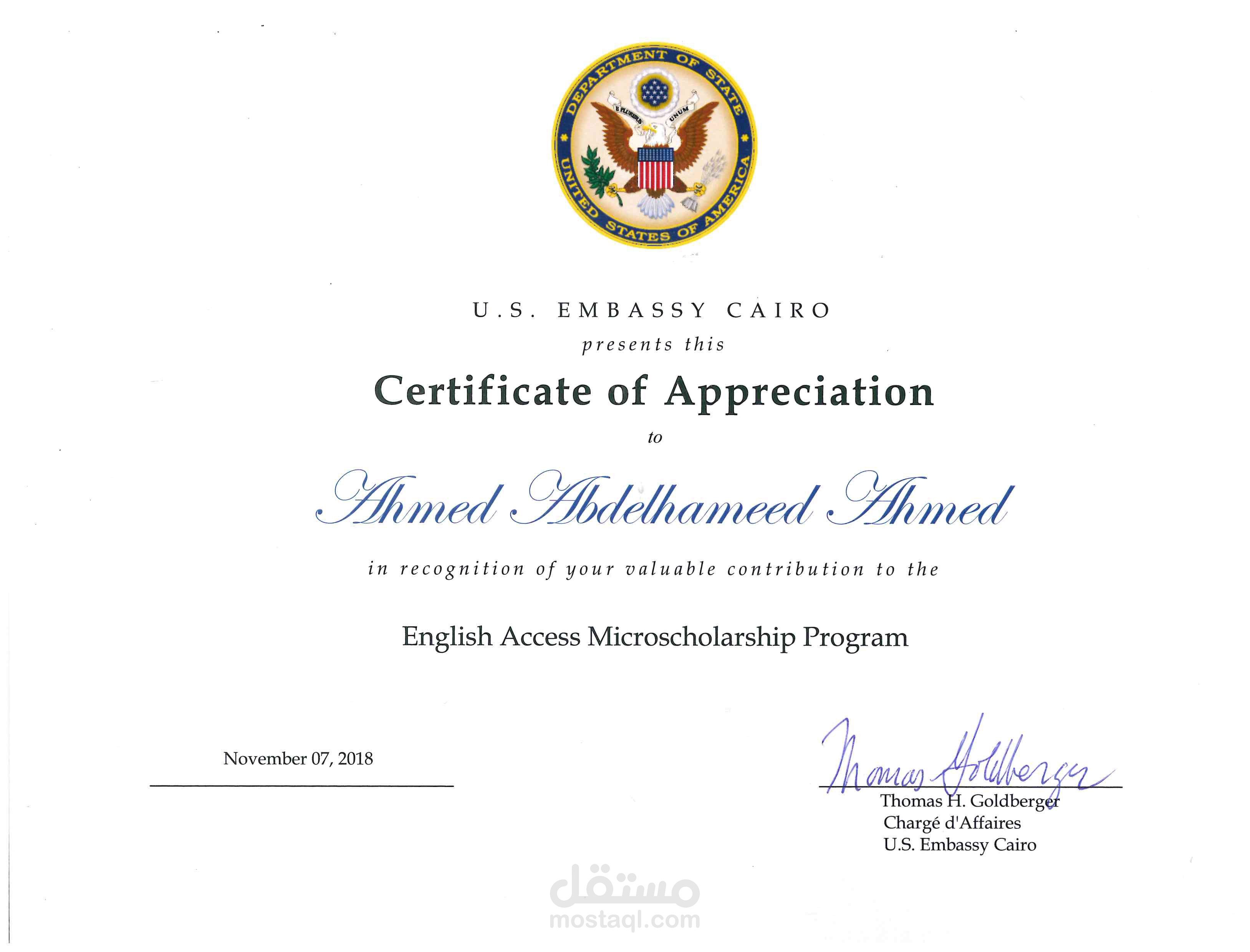 مدرب السفارة الامريكية لبرنامج Access لتدريس اللغة الانجليزية واستخدام احدث طرق التدريس للوصول بالطلبة الى افضل النتائج