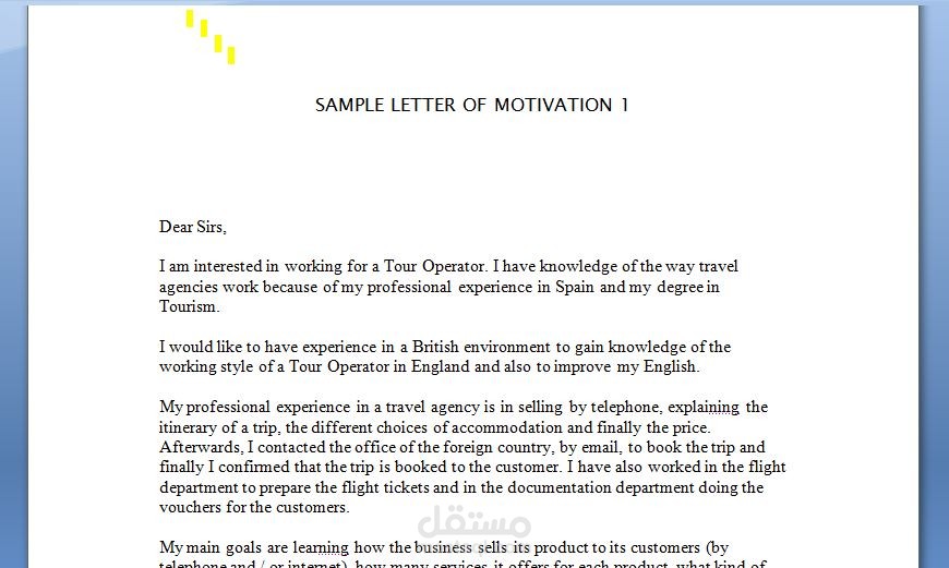 جزء من انشاء رسالة الدافع و التي تسخدم للحصول على المنح الدراسية الدولية و الحصول على وظائف