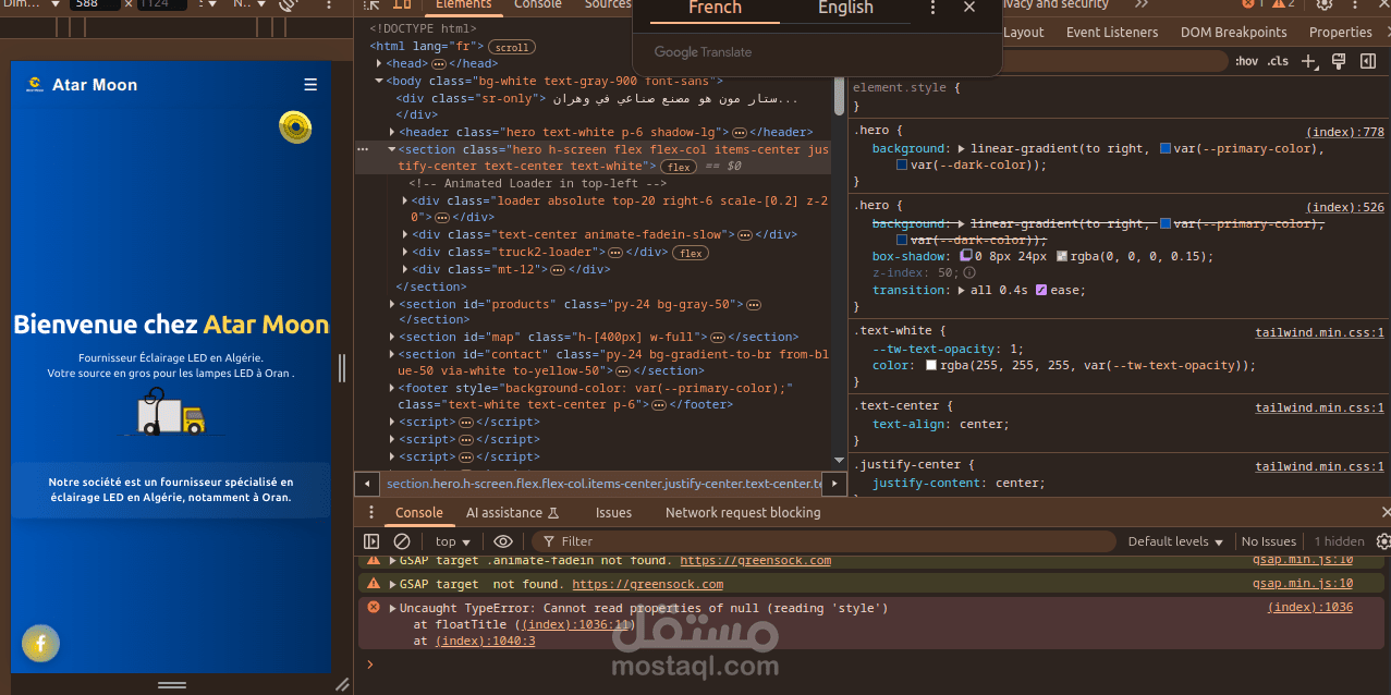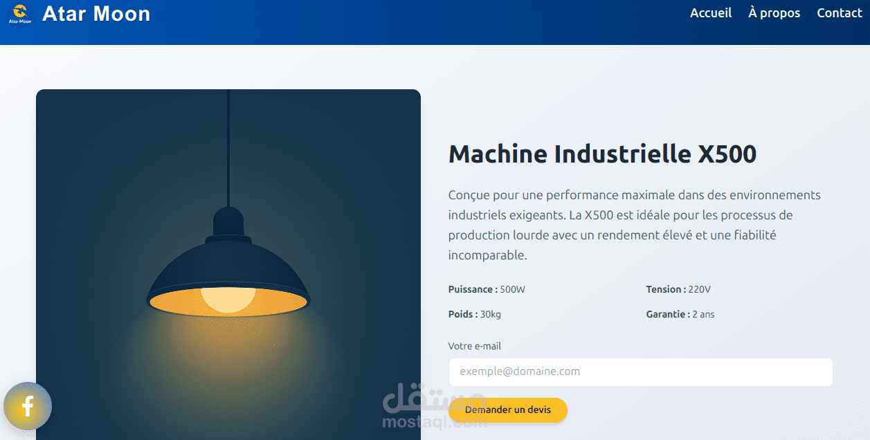 تم إنشاء هذا الموقع لشركة Atar Moon المتخصصة في صناعة المصابيح، بتصميم يجمع بين البساطة والاحترافية. يحتوي الموقع على لمسات أنيميشن ناعمة تمنحه مظهراً عصرياً وجذاباً، مع تجربة مستخدم سلسة على جميع الأجهزة.