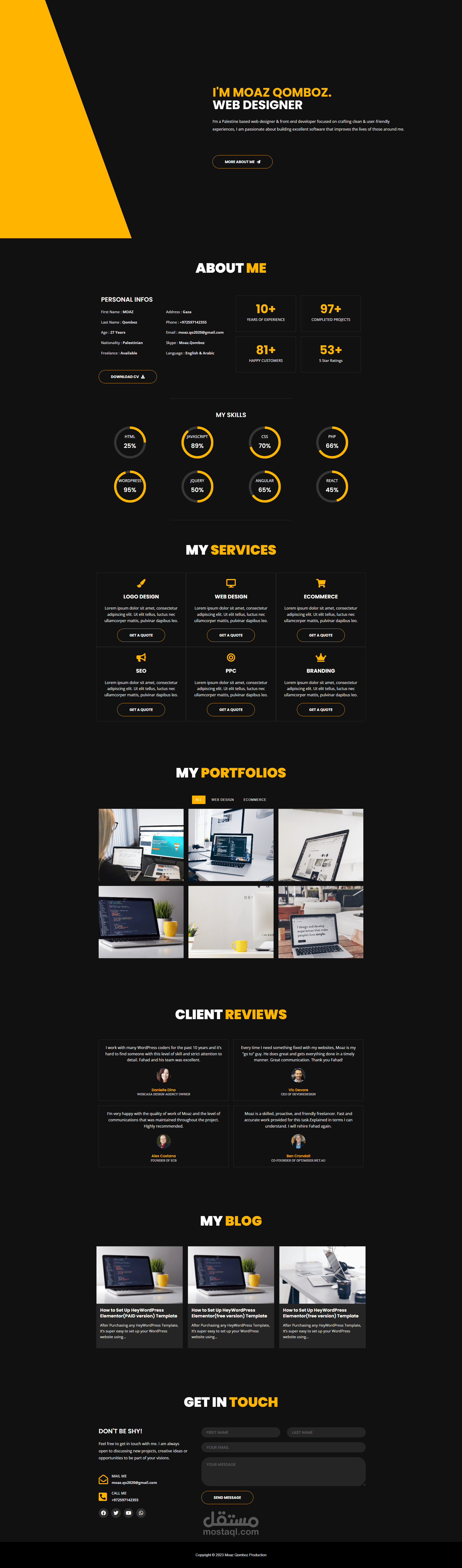 موقع يعرضCV الخاص بي ويعرض نبذة عني+ ملف الاعمال + مهاراتي البرمجية ..