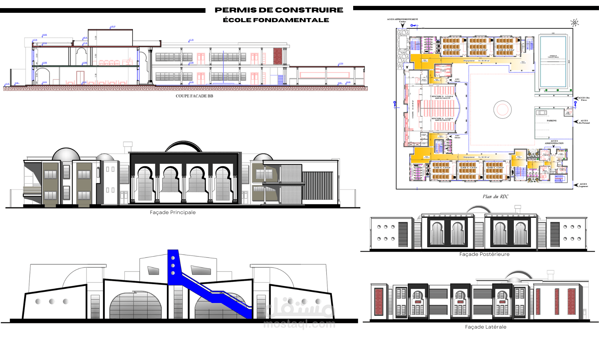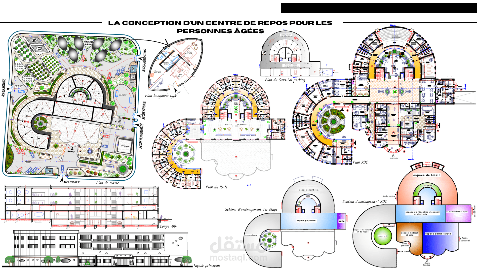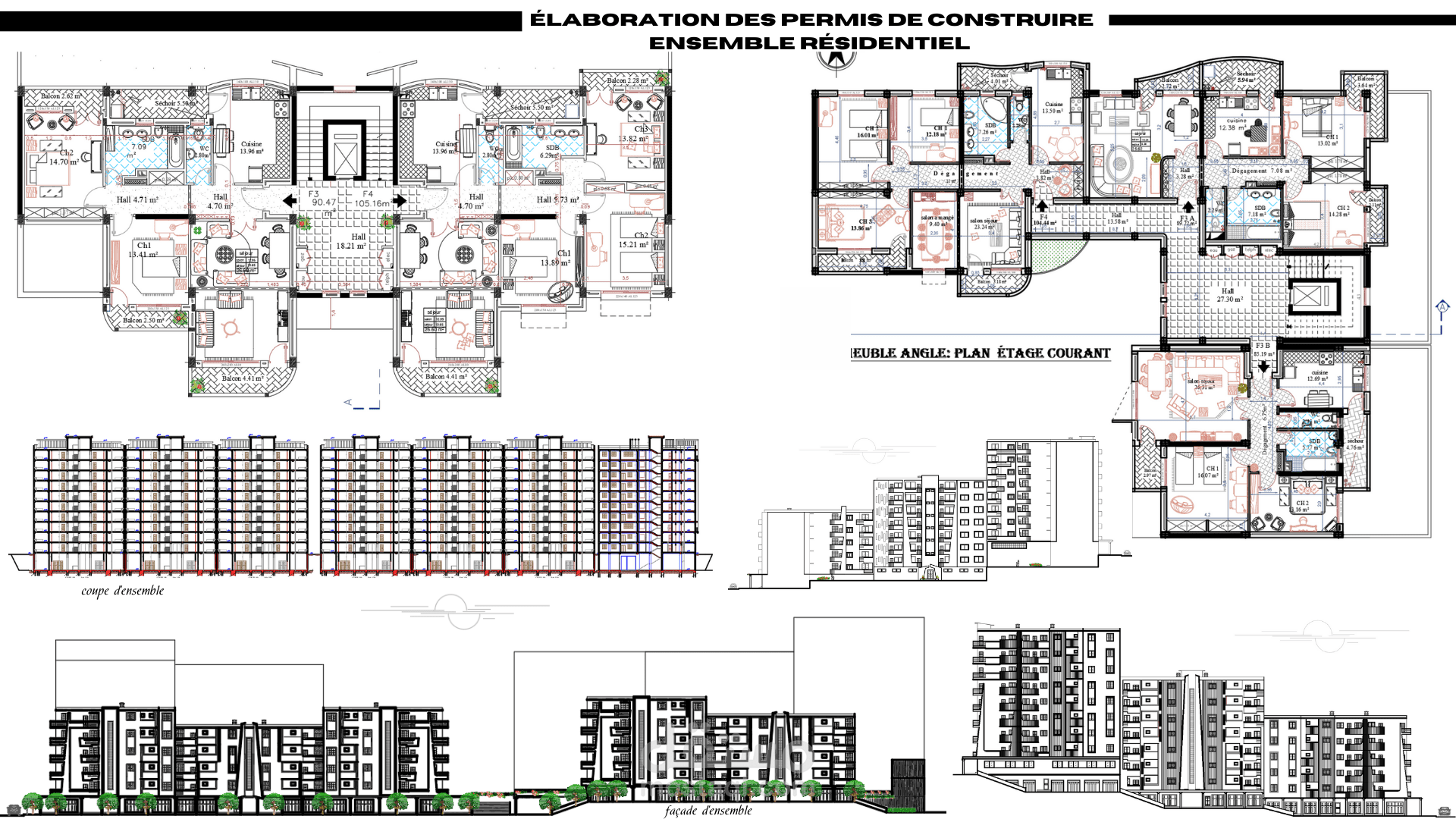 plan de masse et les plans de terrassement, schémas aménagements, les différents plans + coupes + façades