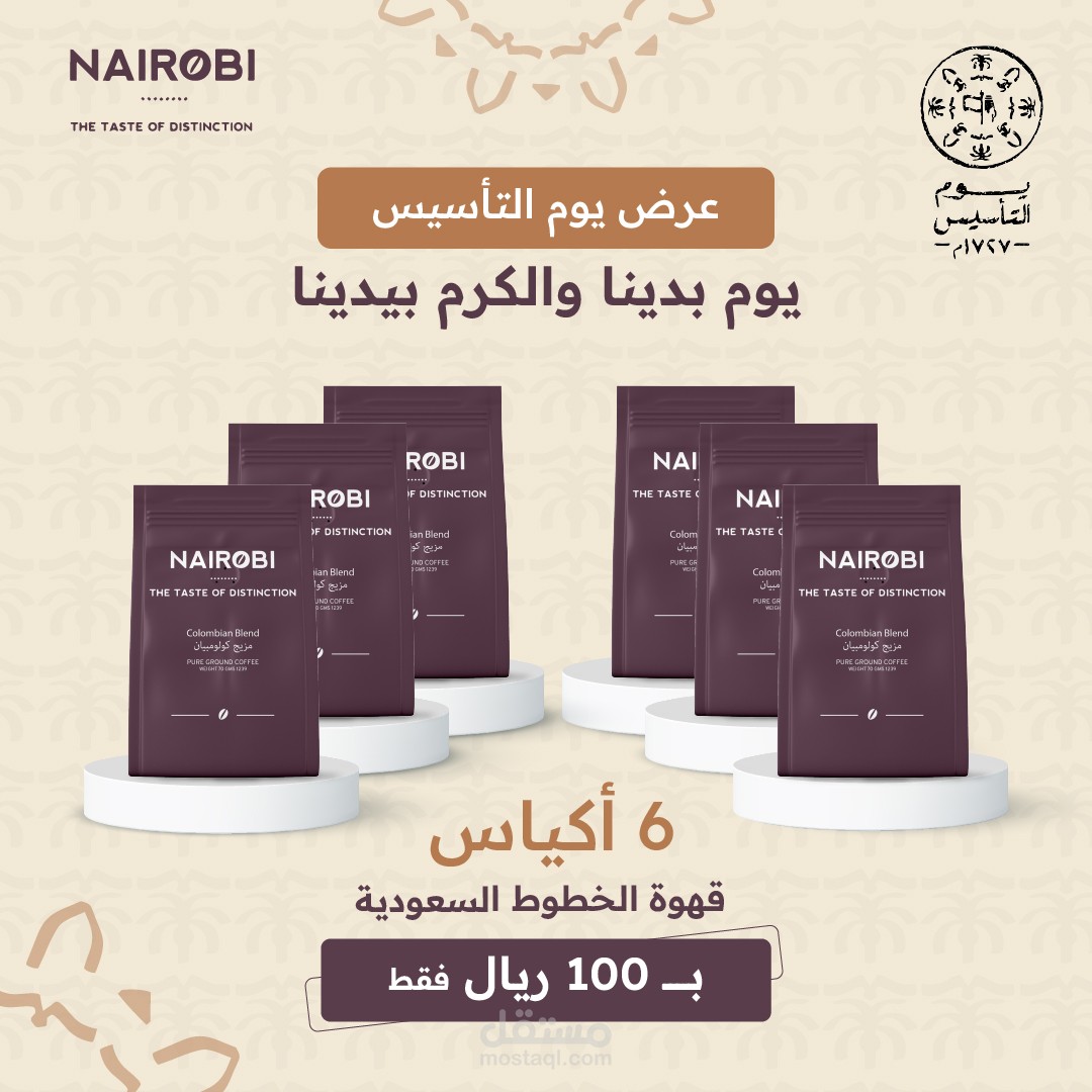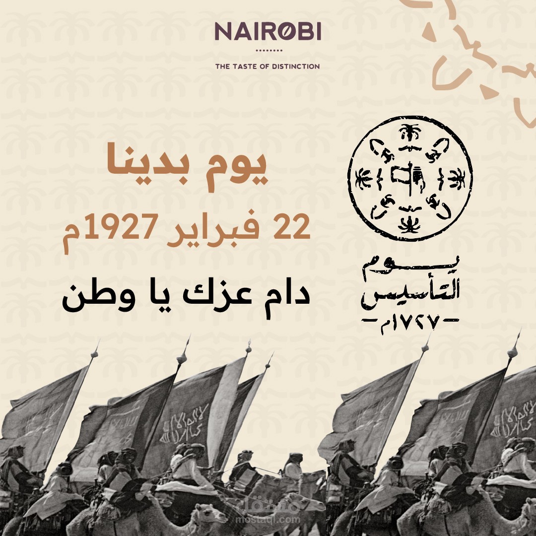 تصميم يوم التأسيس السعودي يتميز بالألوان الوطنية والعناصر الثقافية والتاريخية التي ترمز إلى المملكة العربية السعودية وتاريخها العريق. يهدف التصميم إلى الاحتفال بتأسيس المملكة وتوثيق الروح الوطنية والوحدة الوطنية للشعب السعودي.