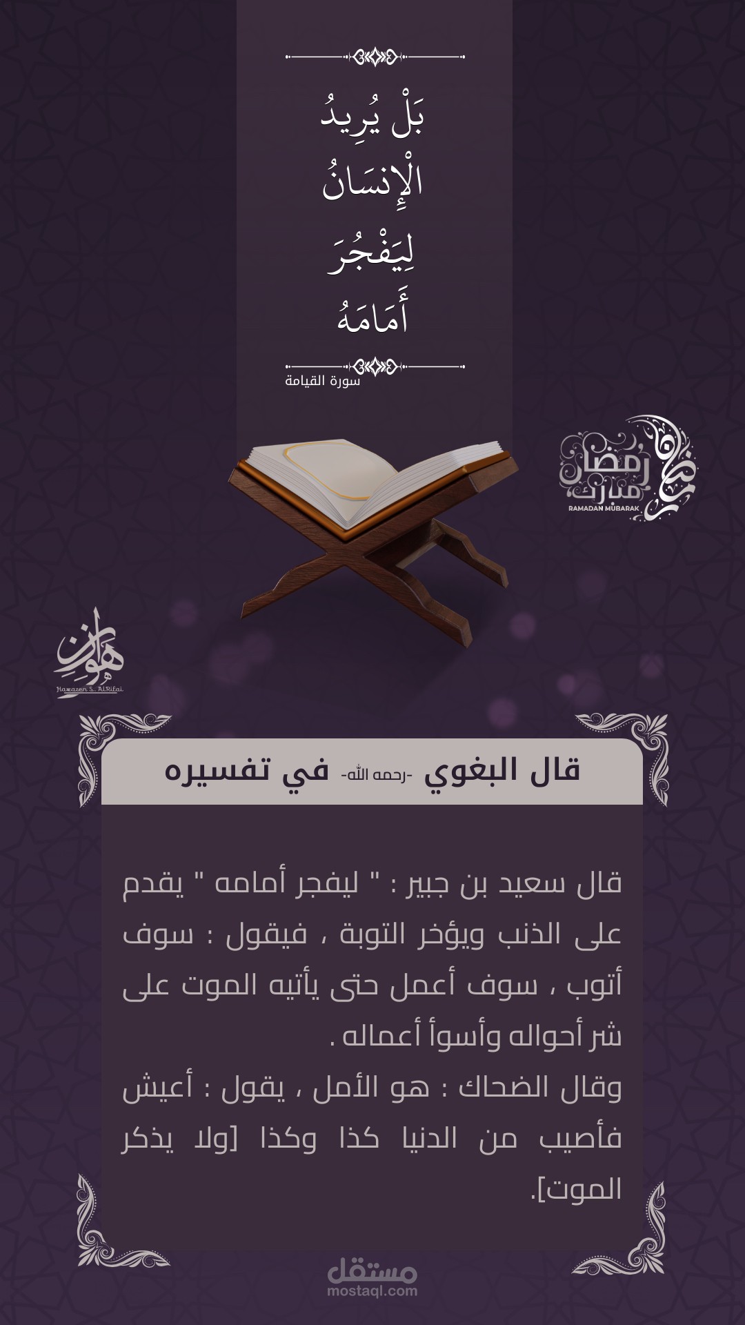 مجموعة تصاميم عبارة عن آية ومقتطف من تفسيرها.