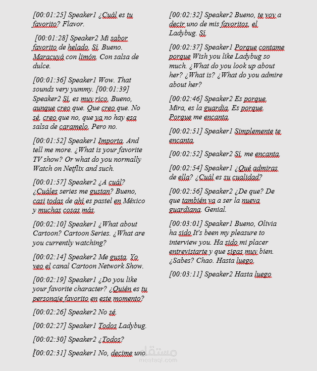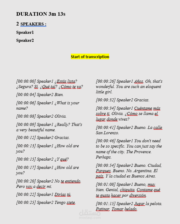 The Client Sent me audio in Spanish its duration is * 3 Min 13 Sec * to transcript it.