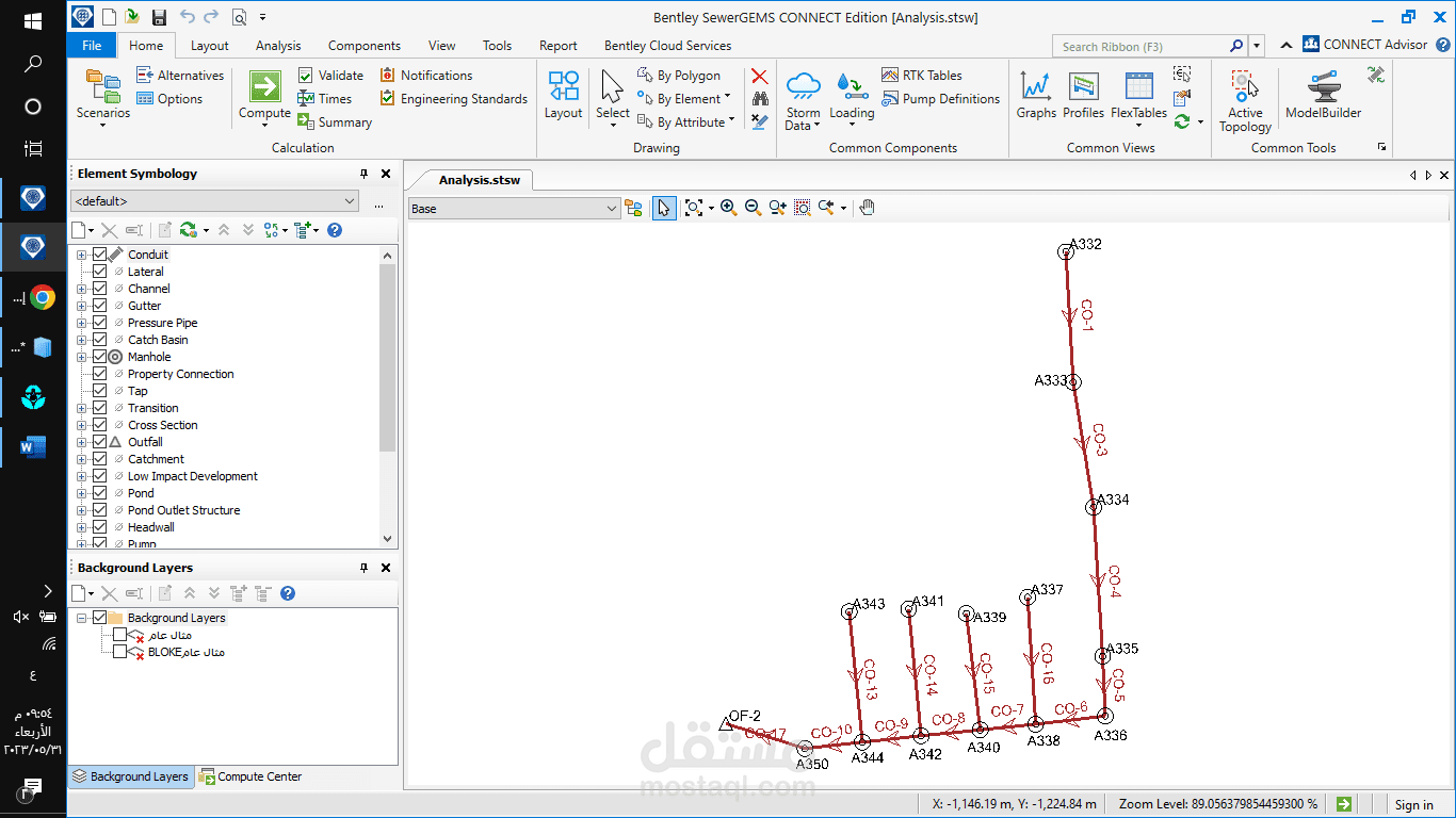 مثال مصغر عن تصميم شبكات مياه الصرف المختلطة في المدن باستخدام برنامج Bently SewerGems Connect Edition