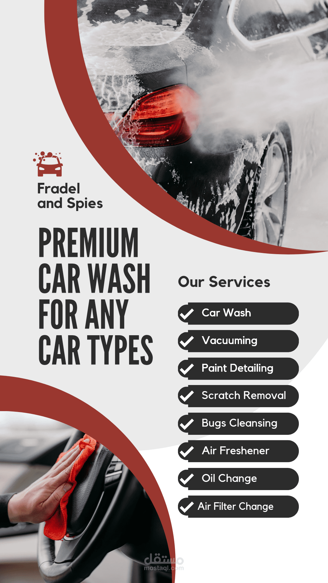 اعلان عن محل تنضيف سيارات بالوان جذابه وتفاصيل العمل