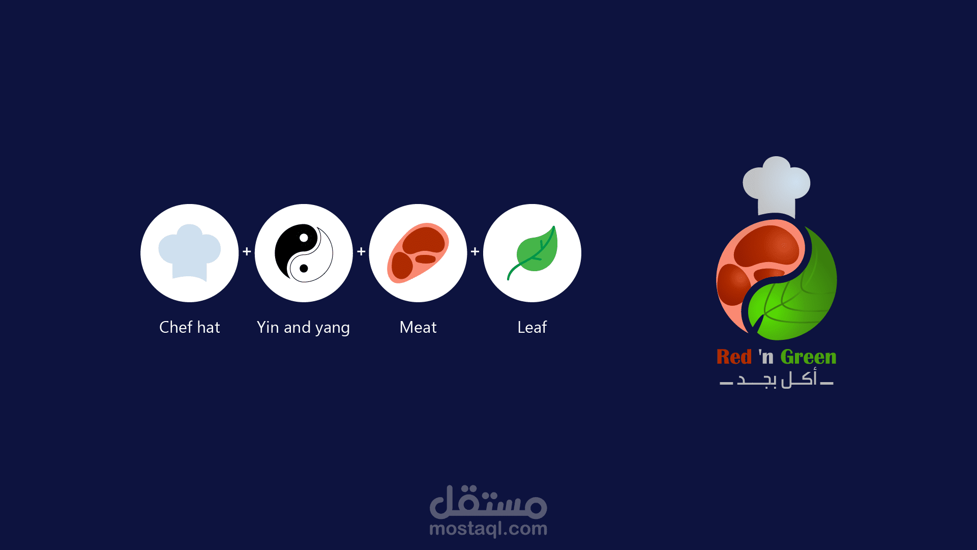 لوجو لمطعم يقدم طعاما للنباتيين وأيضا لمن يتناول اللحم.