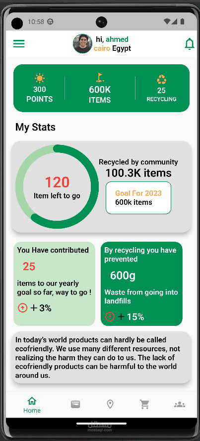 Community forum: The app could include a forum where users can connect with other environmentally conscious individuals to share ideas, tips, and advice on sustainable living.