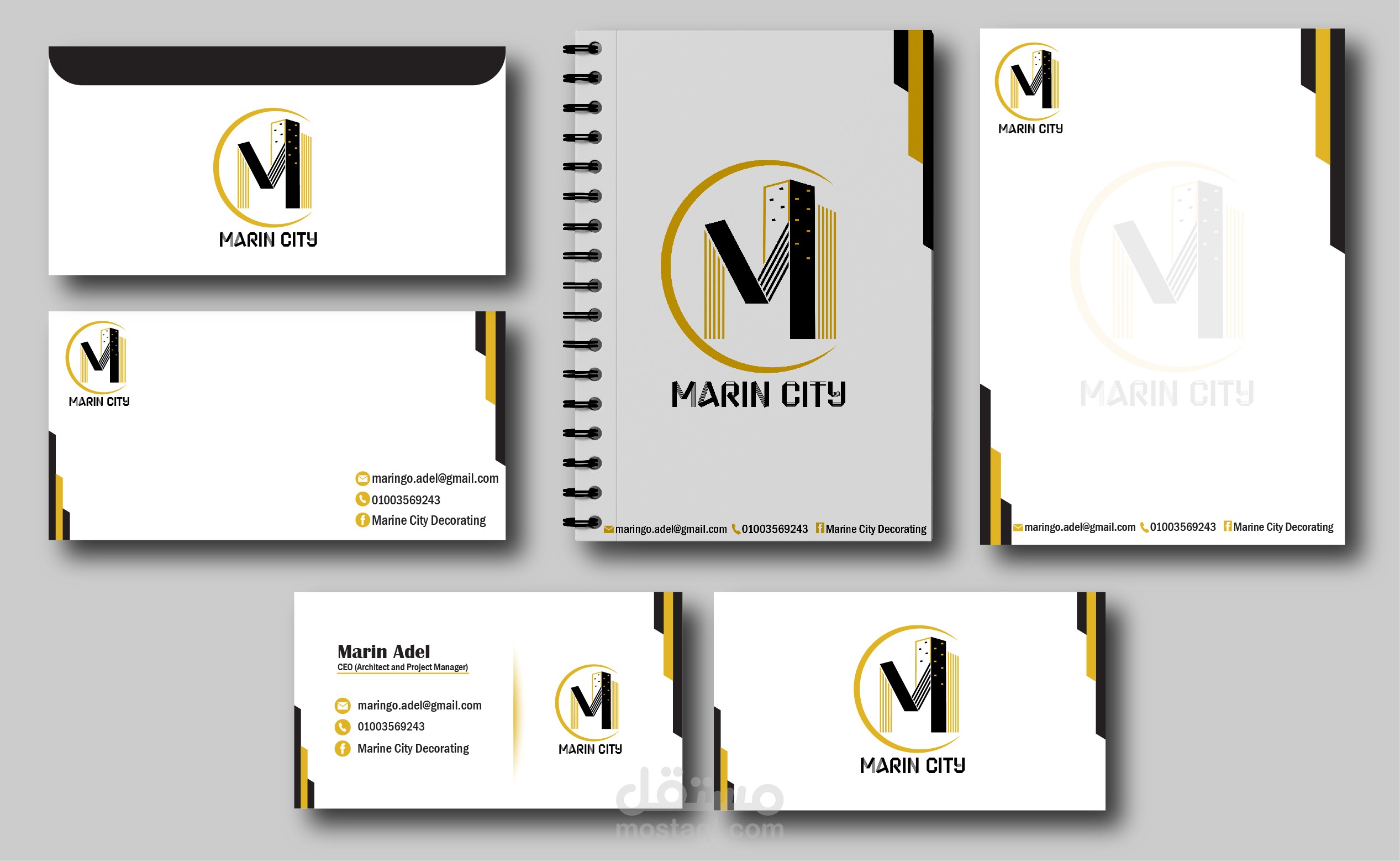 Logo, business card, letterhead, envelope, portofilio, posts