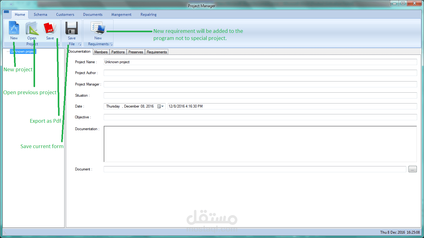 المشروع عبارة عن برنامج لإدارة المشاريع ويتضمن: