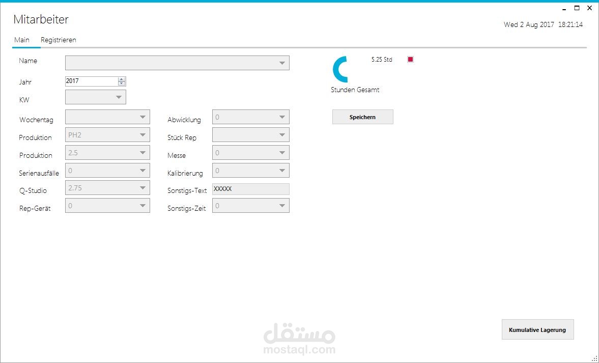 يقوم الموظف بتسجيل بيانات عمله حسب القسم المتواجد فيه من عدد ساعات عمل أو صيانة أو غيرها وكذلك نوع الإنتاج بحيث لا تتجاوز 10 ساعات كمجموع في اليوم الواحد وكذلك مراجعة سجله