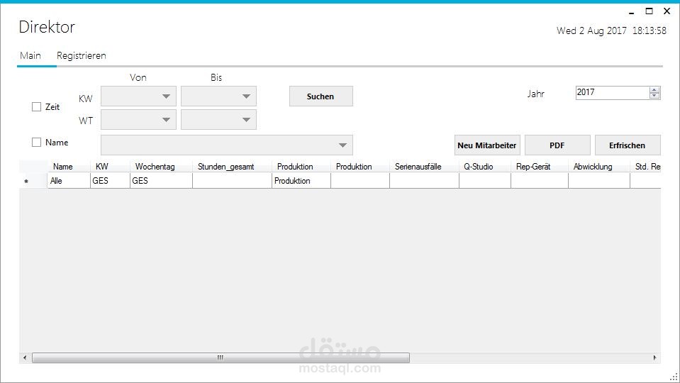 يستطيع المدير إضافة موظفين ومراقبة إنتاج جميع الموظفين والبحث حسب خصائص مختلفة