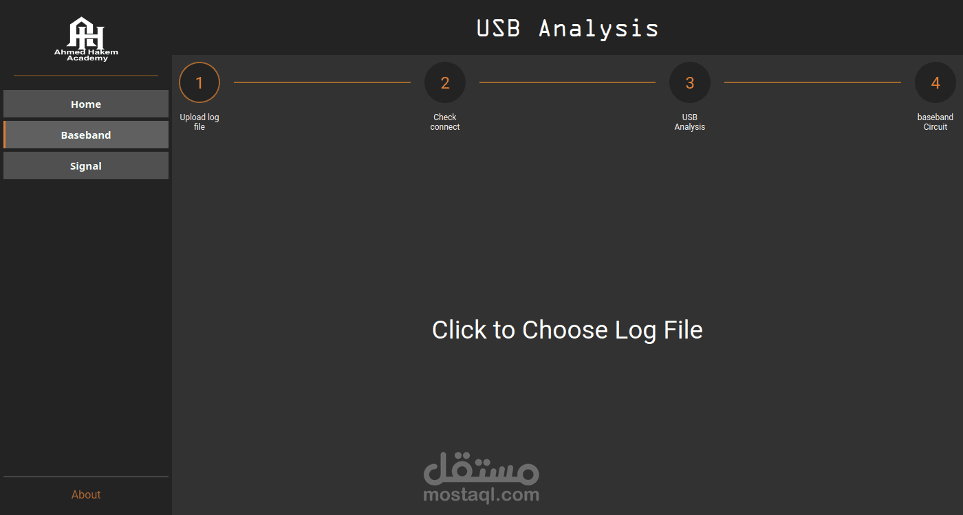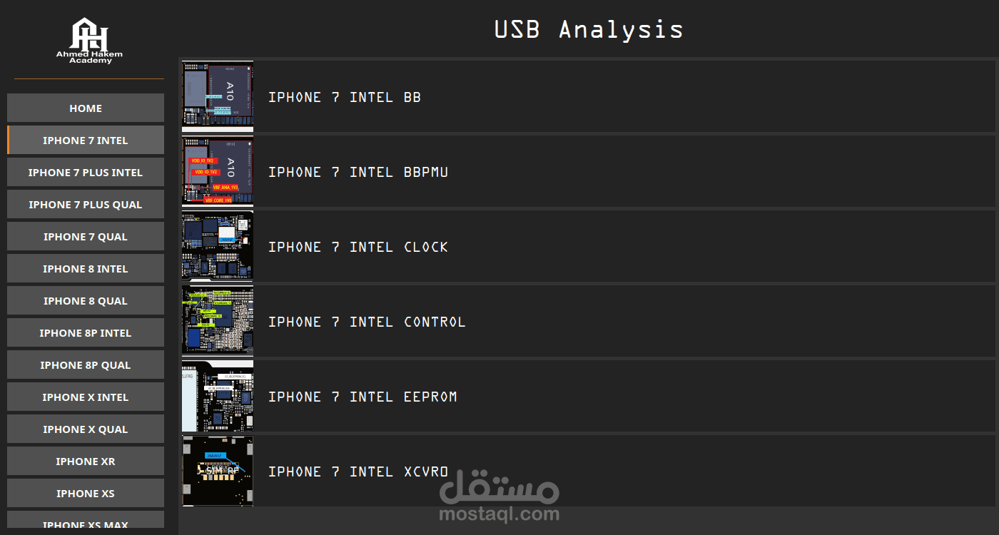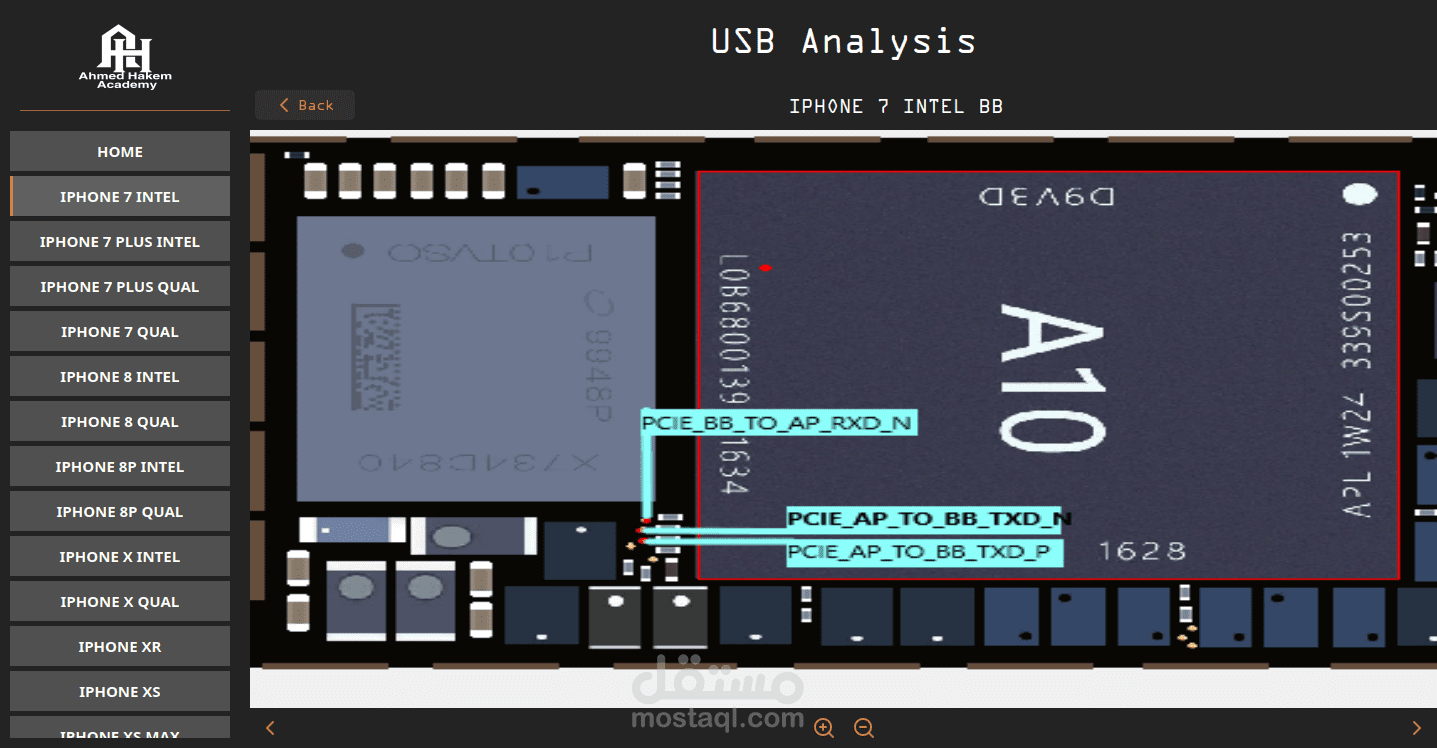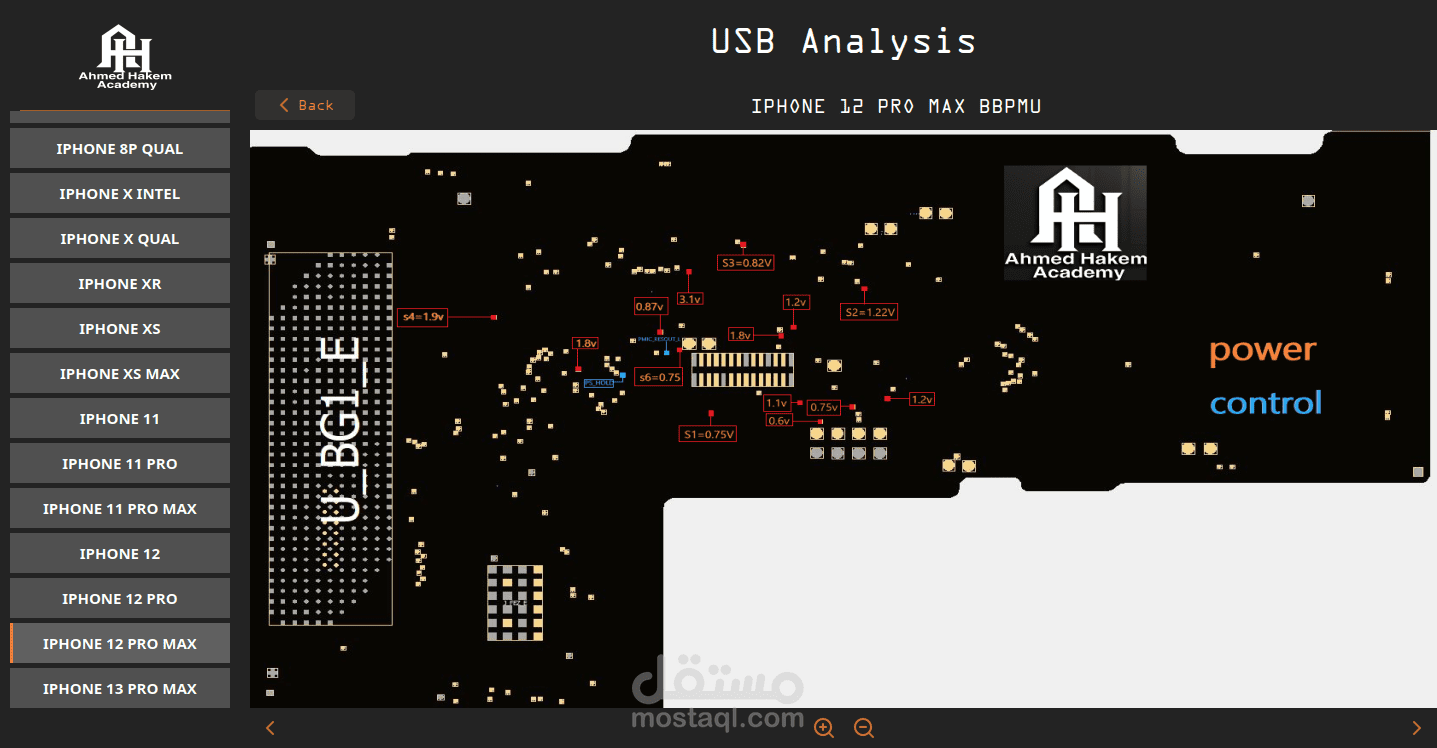 برنامج USB Circuit Analyzer هوا احد البرامج التي تم عملها خصيصا لإدارة اكادمية تعليمية ومركز صيانة وتصليح هواتف الايفون, مهمة التطبيق هي عمل تحليل ومقارنه للملفات المستخرجة من معالجات الهاتف وعرض النتائج بناء علي هذا التحليل ونتائج اخري مستخرجه من تطبيق اخر مرطبت به مع تطبيق بعض الحلول والتصليحات.
