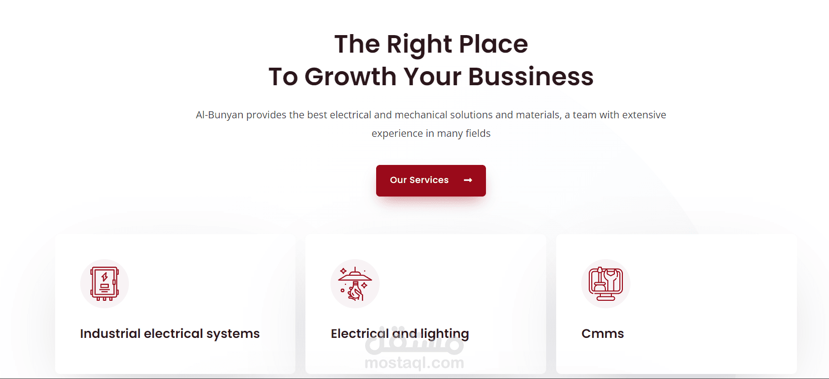 تتمتع شركة البنيان بخبرة طويلة في مجال الأعمال الكهروميكانيكية ولديها طاقم من المهندسين والفنيين على أعلى مستوى. تشير الأعمال الكهروميكانيكية إلى تحليل وتصميم وتصنيع وصيانة المعدات والمنتجات بناءً على مزيج من الأنظمة الكهربائية والأنظمة الميكانيكية