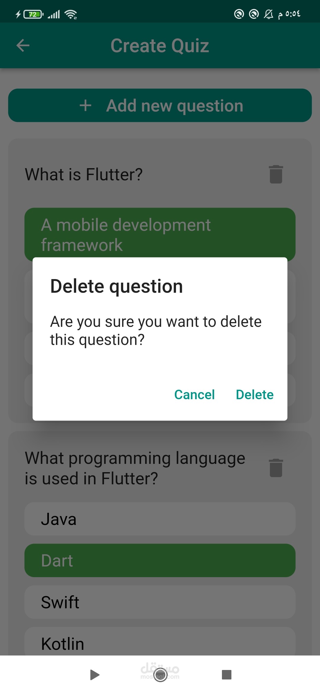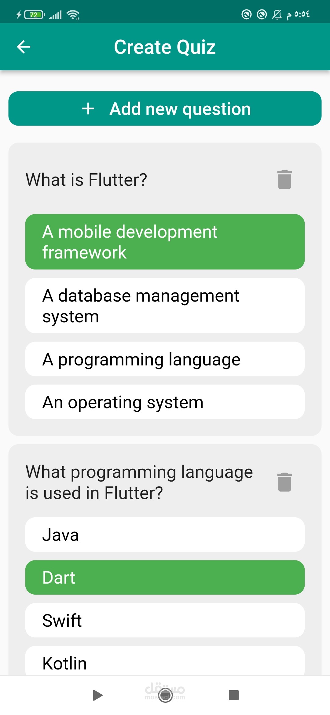 تم تطوير تطبيق شامل للمسابقات والاختبارات القصيرة باستخدام لغة Dart وإطار العمل Flutter. تم استخدام لغة Dart للبرمجة وإطار العمل Flutter لتطوير التطبيق بطريقة تعمل على جميع المنصات.