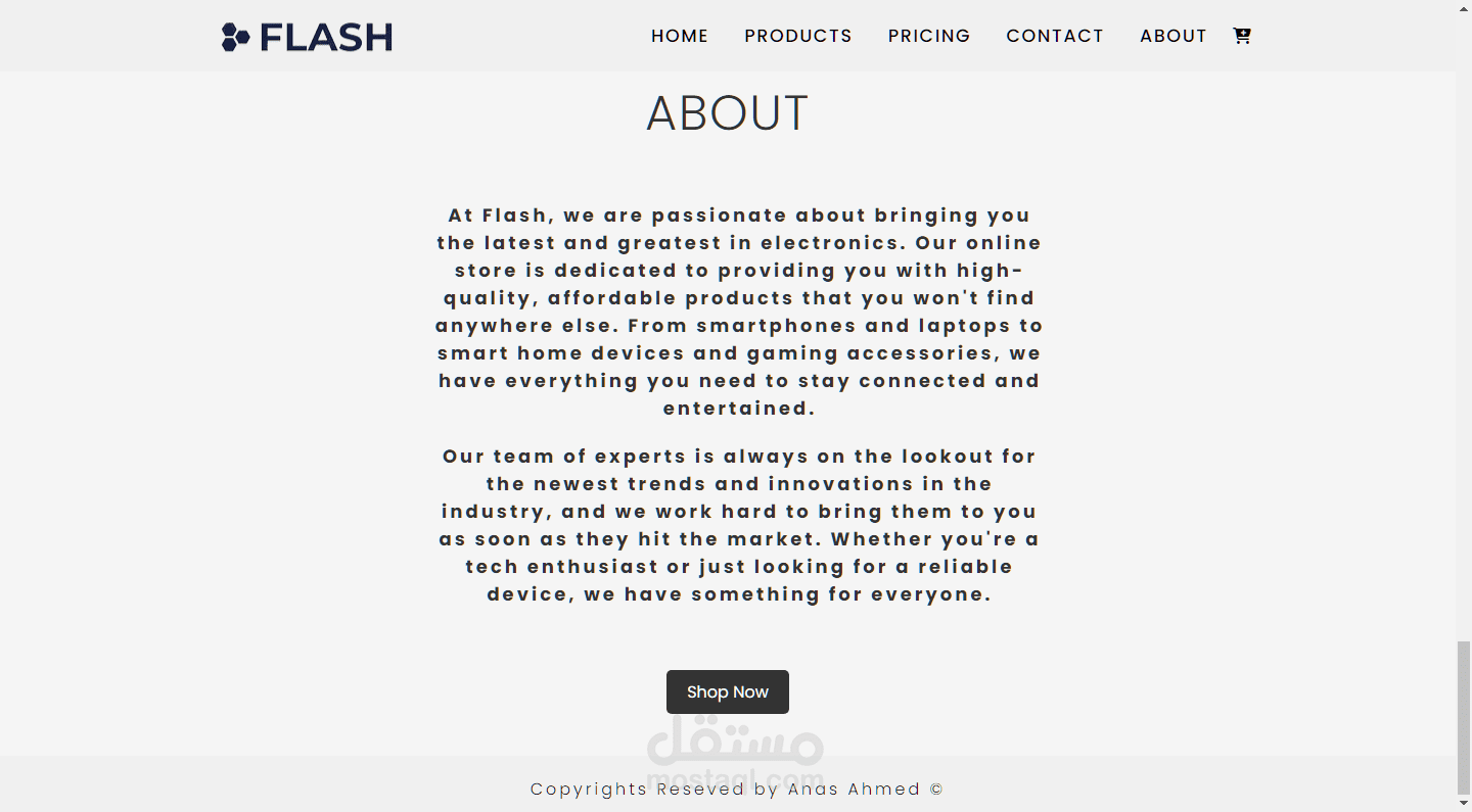 لقد صممت موقع الكتروني باستخدام HTML5 و CSS3 لمتجر إلكترونيات يحمل اسم "فلاش". يهدف الموقع إلى توفير مجموعة واسعة من المنتجات الإلكترونية عالية الجودة بأسعار مناسبة للعملاء. تم تصميم الموقع بشكل احترافي لتوفير تجربة مستخدم سهلة وسلسة للزوار، مع تحسينات واجهة المستخدم وتصميم متجاوب لجميع الأجهزة والشاشات. يستخدم الموقع تقنيات HTML5 و CSS3 الحديثة لتوفير تجربة ممتعة للمستخدمين. إنه موقع متميز يوفر منتجات عالية الجودة ويعرضها بتصميم جذاب ومتطور.