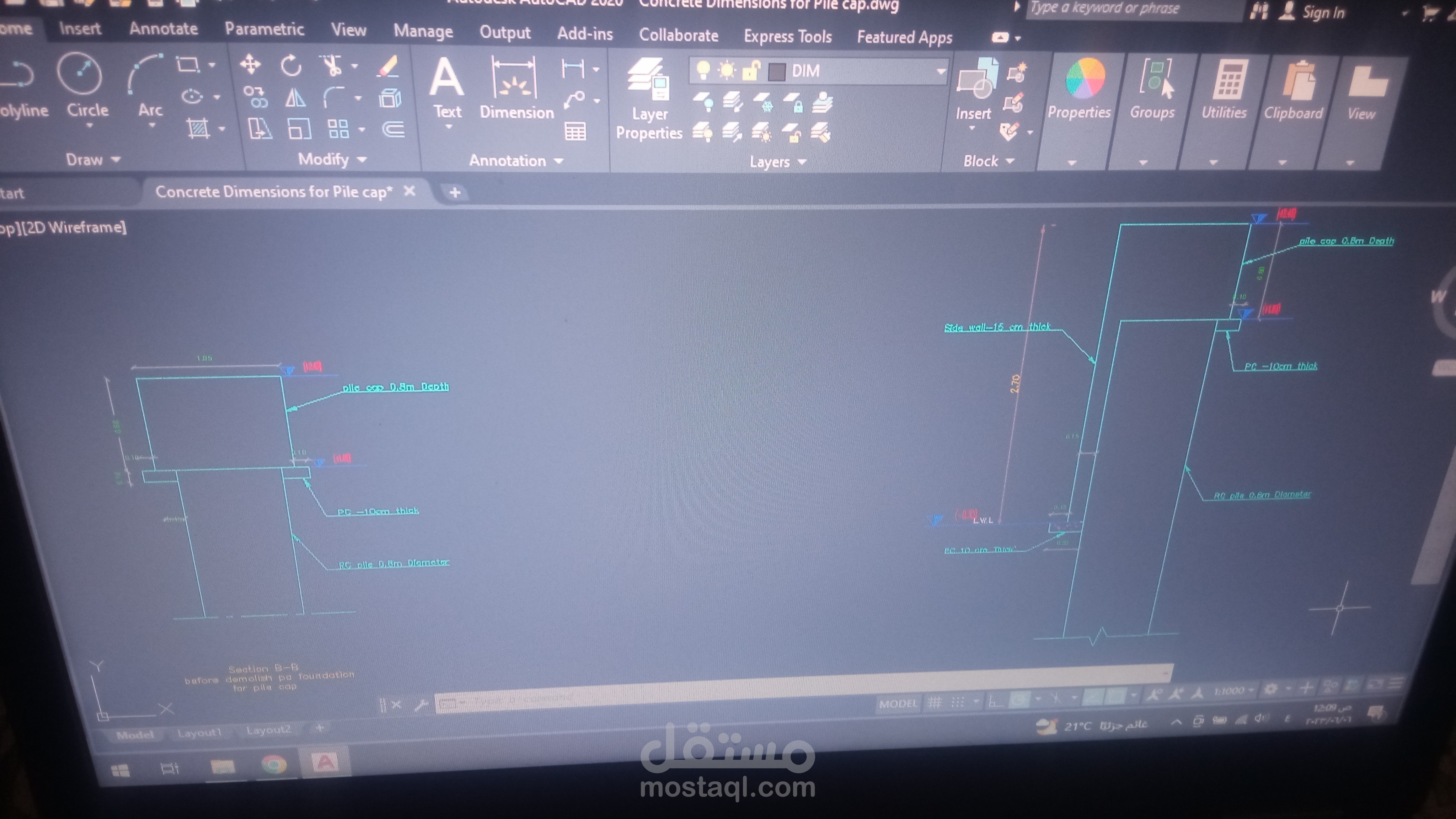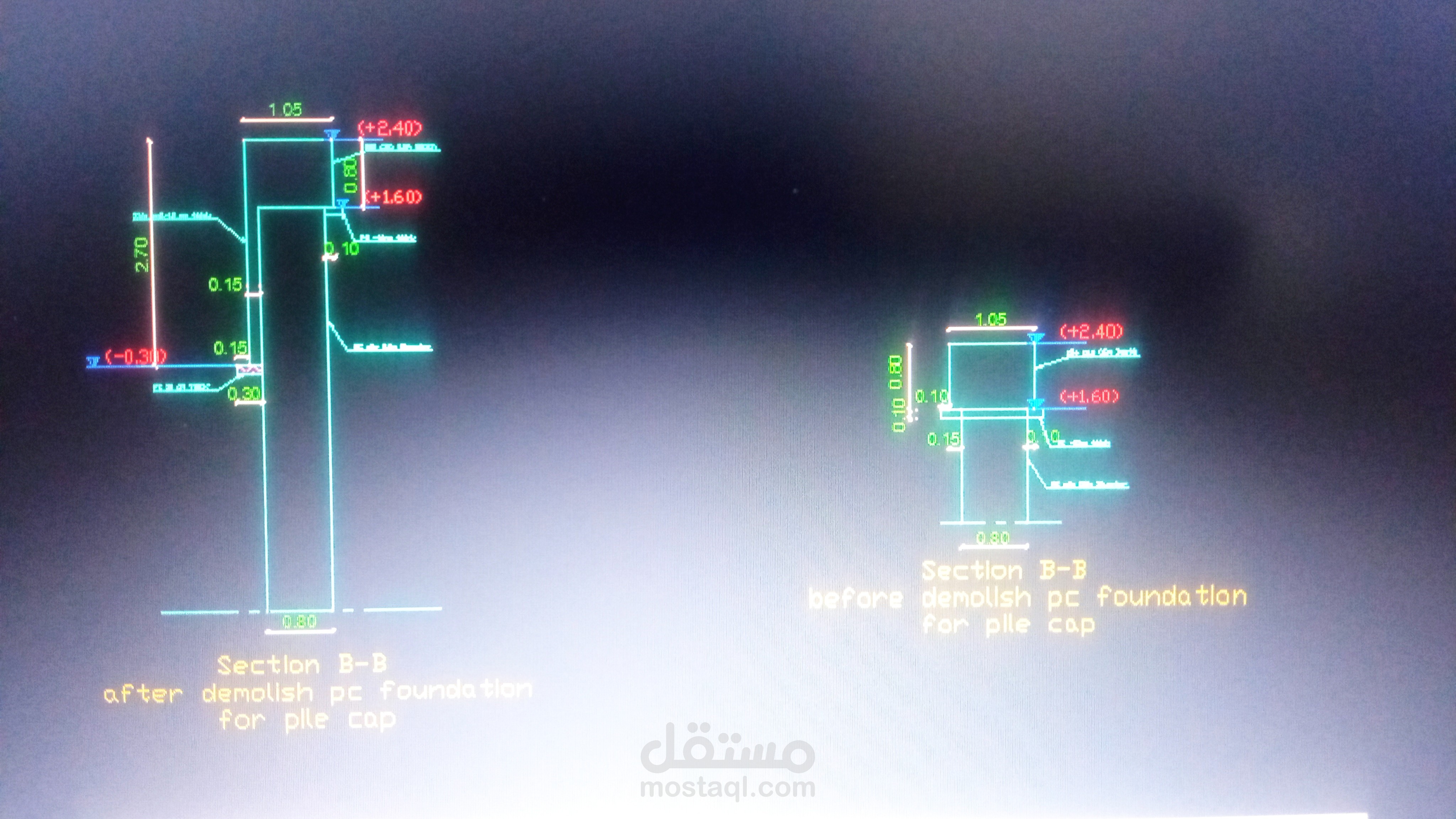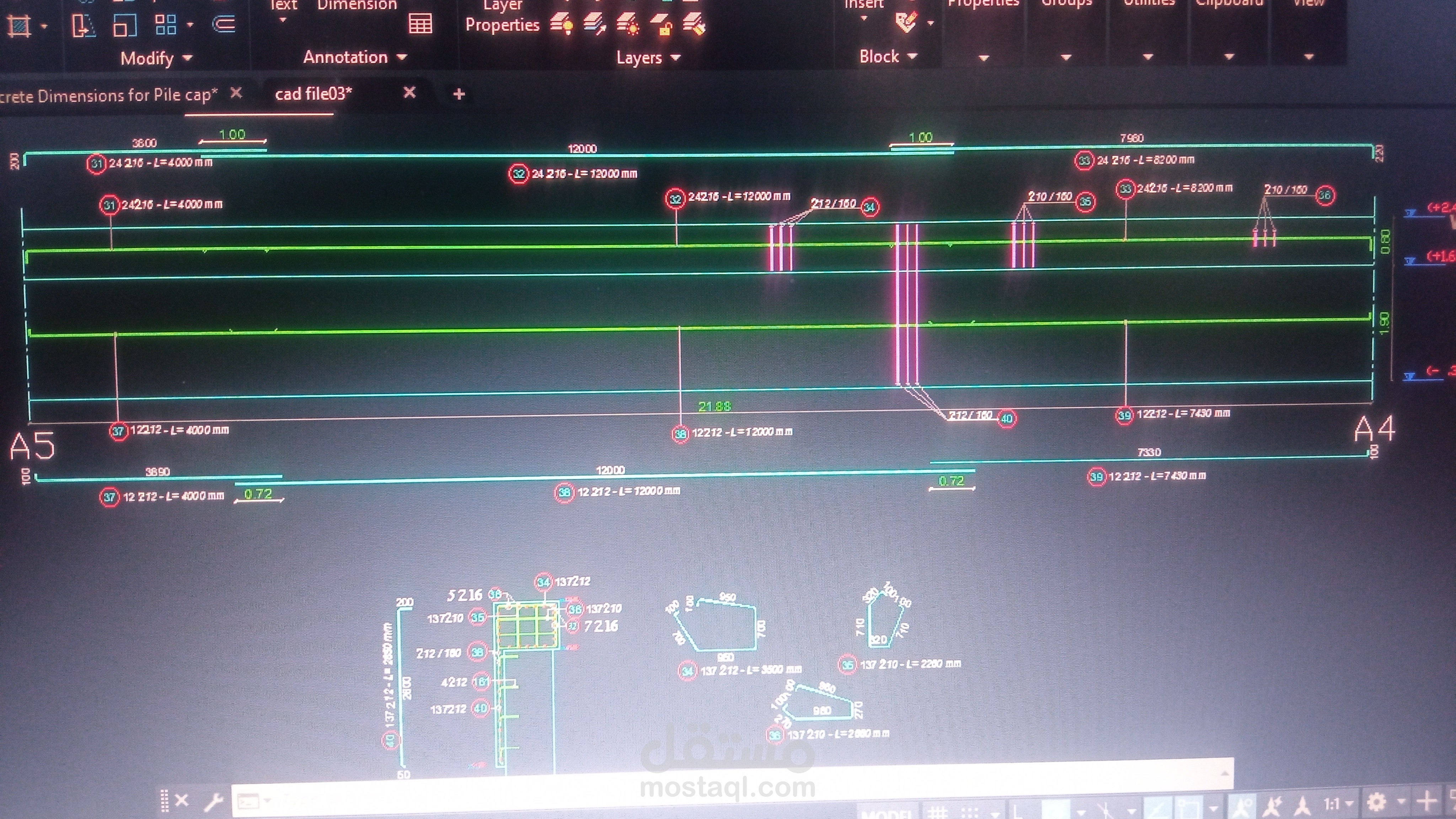 " shop drawing for pile cap sections " concrete dimensions and reinforcement