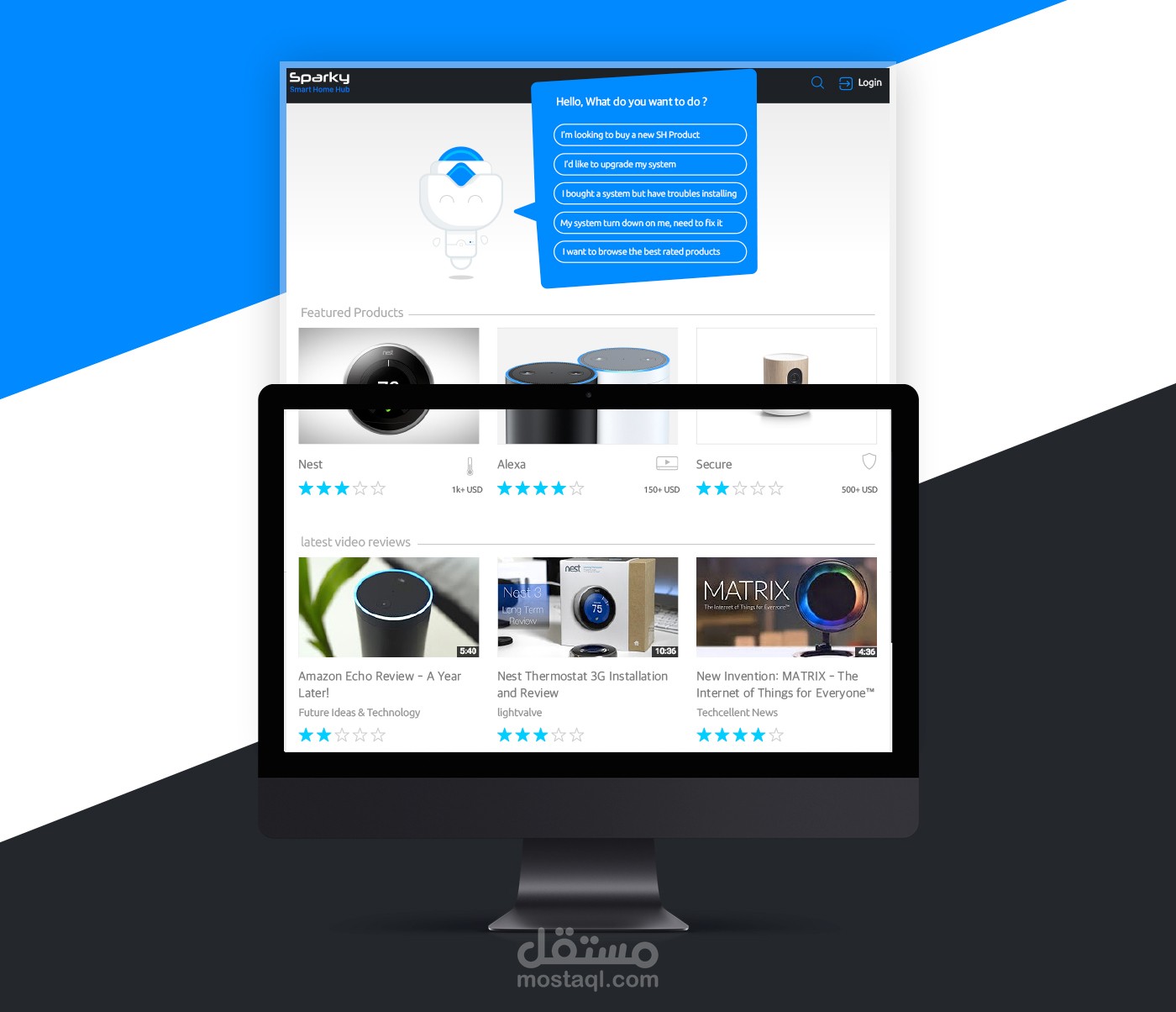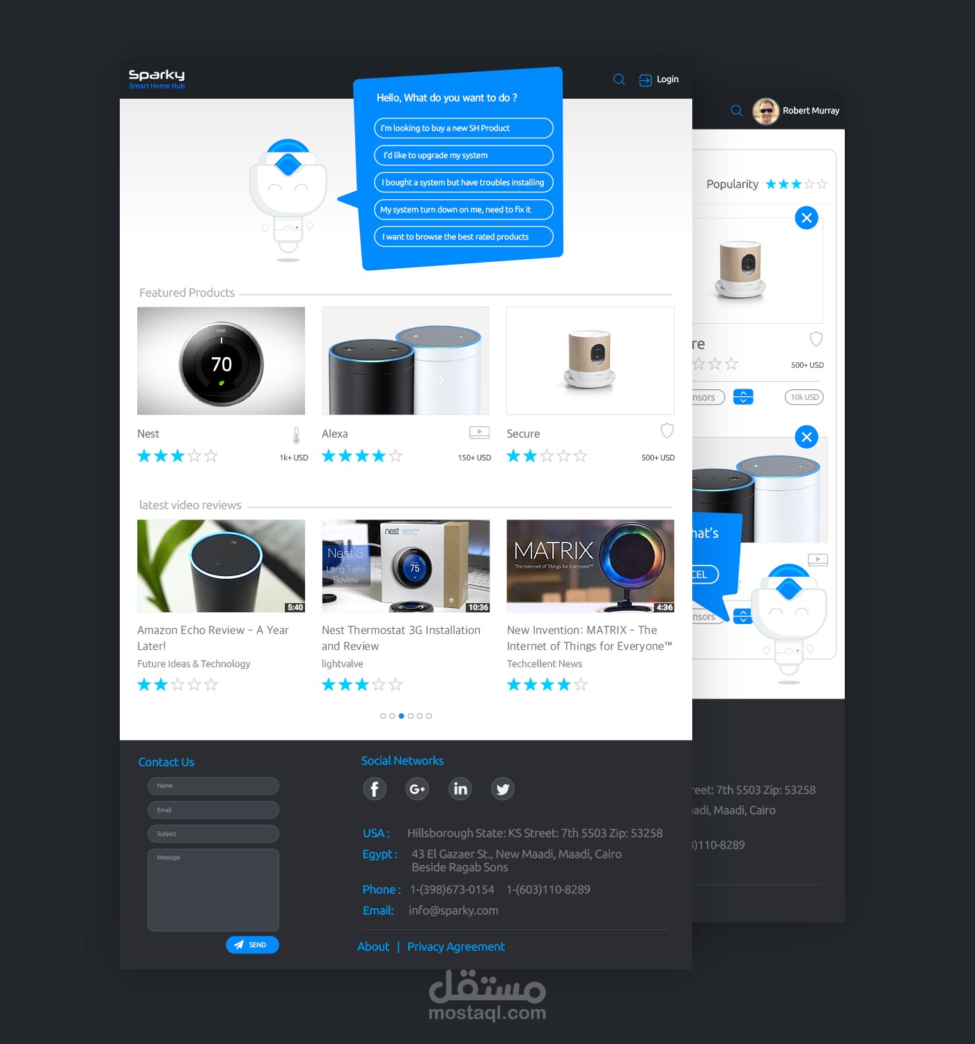 قمت بتصميم واجهة لموقع متخصص في مساعدة المستخدمين لإيجاد أجهزة الـ Smat Home من ناحية الجودة والسعر والخدمةوكذلك صممت الشخصية وهوية الموقع