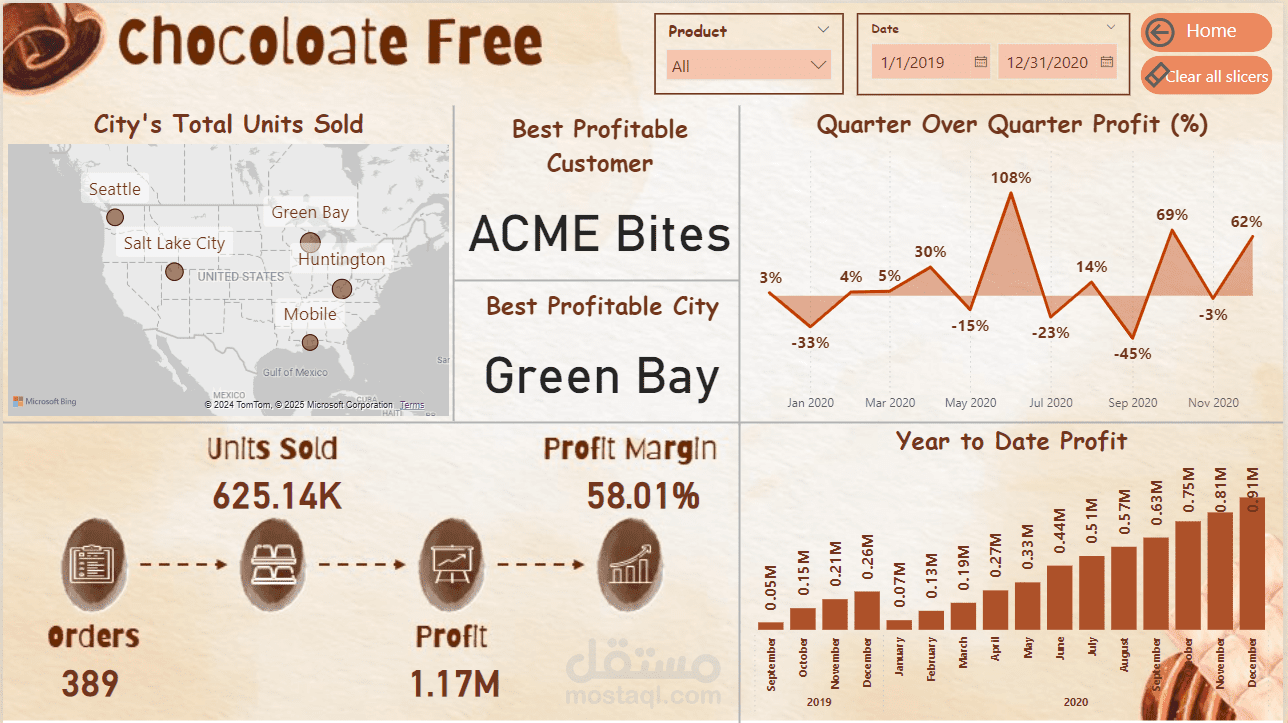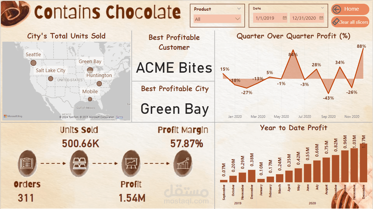 يهدف هذا المشروع إلى تحليل البيانات الرئيسية من لوحة أداء مصنع الشوكولاتة، مع التركيز على كفاءة الإنتاج، اتجاهات المبيعات، وتحسين العمليات. من خلال مراجعة الإحصاءات والتصورات التفصيلية، يسعى التحليل إلى تحديد الأنماط، تسليط الضوء على مناطق النجاح، واقتراح رؤى قابلة للتنفيذ لتعزيز الإنتاجية وتلبية متطلبات السوق. ستُستخدم النتائج كأساس لاتخاذ قرارات مدروسة وتخطيط مستقبلي.