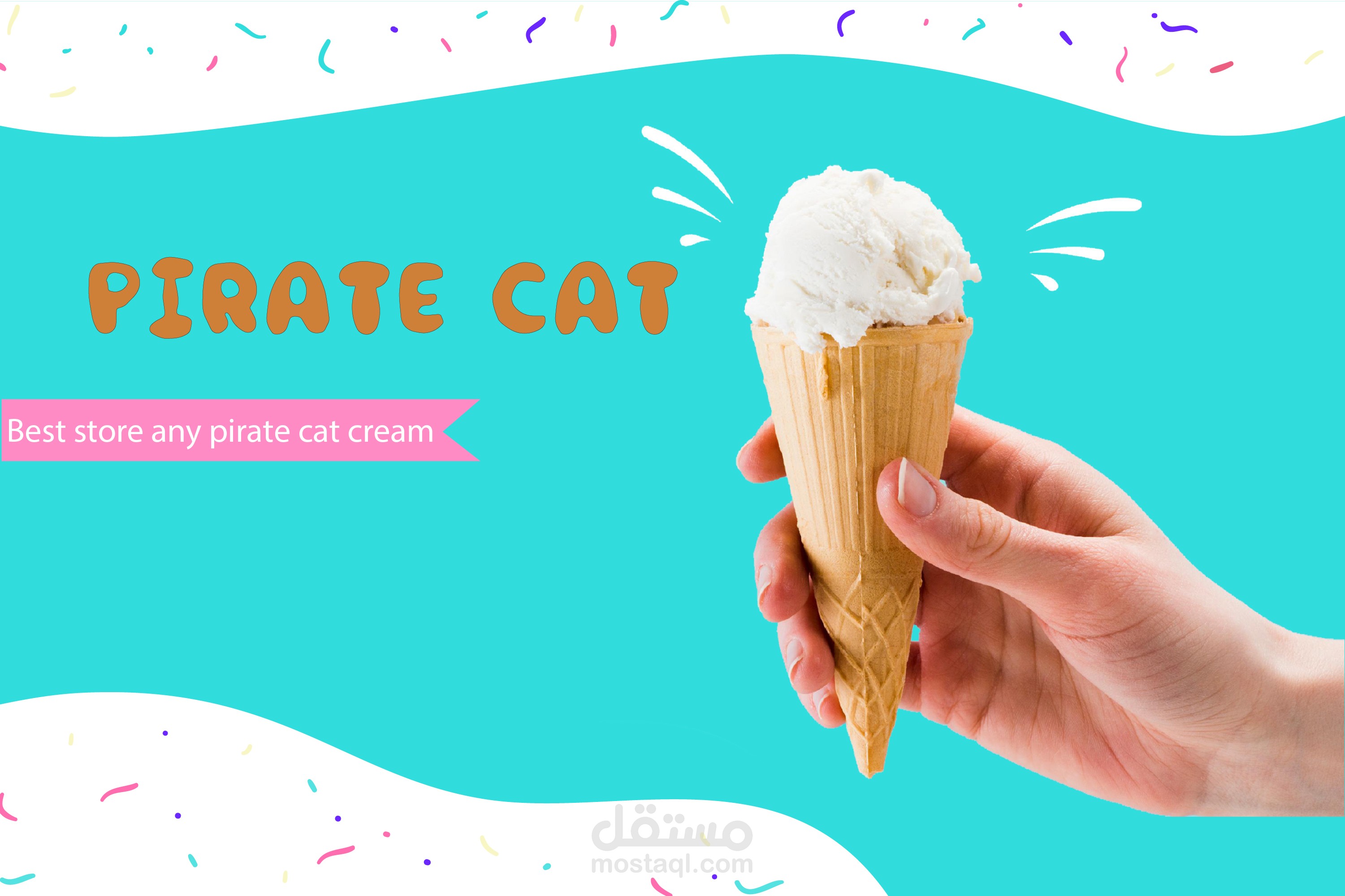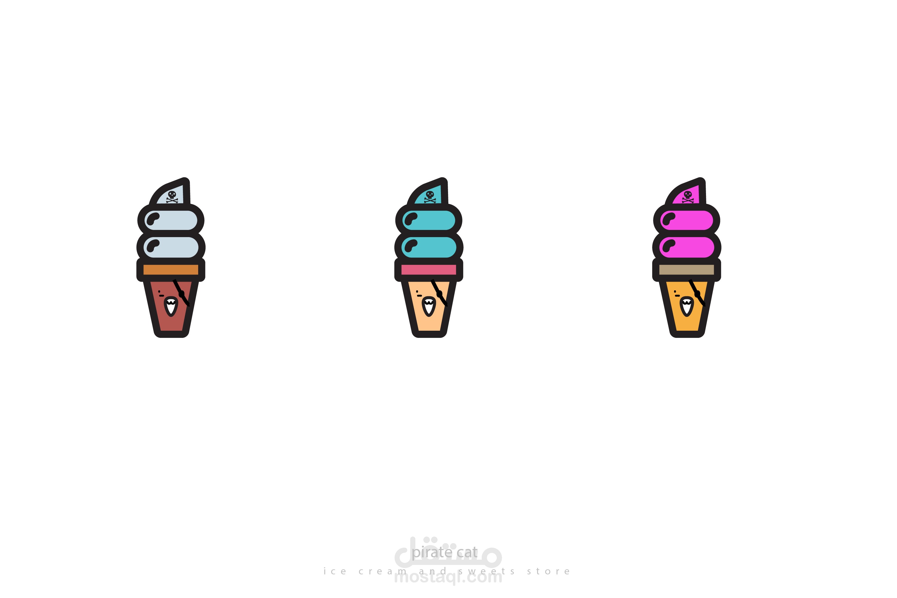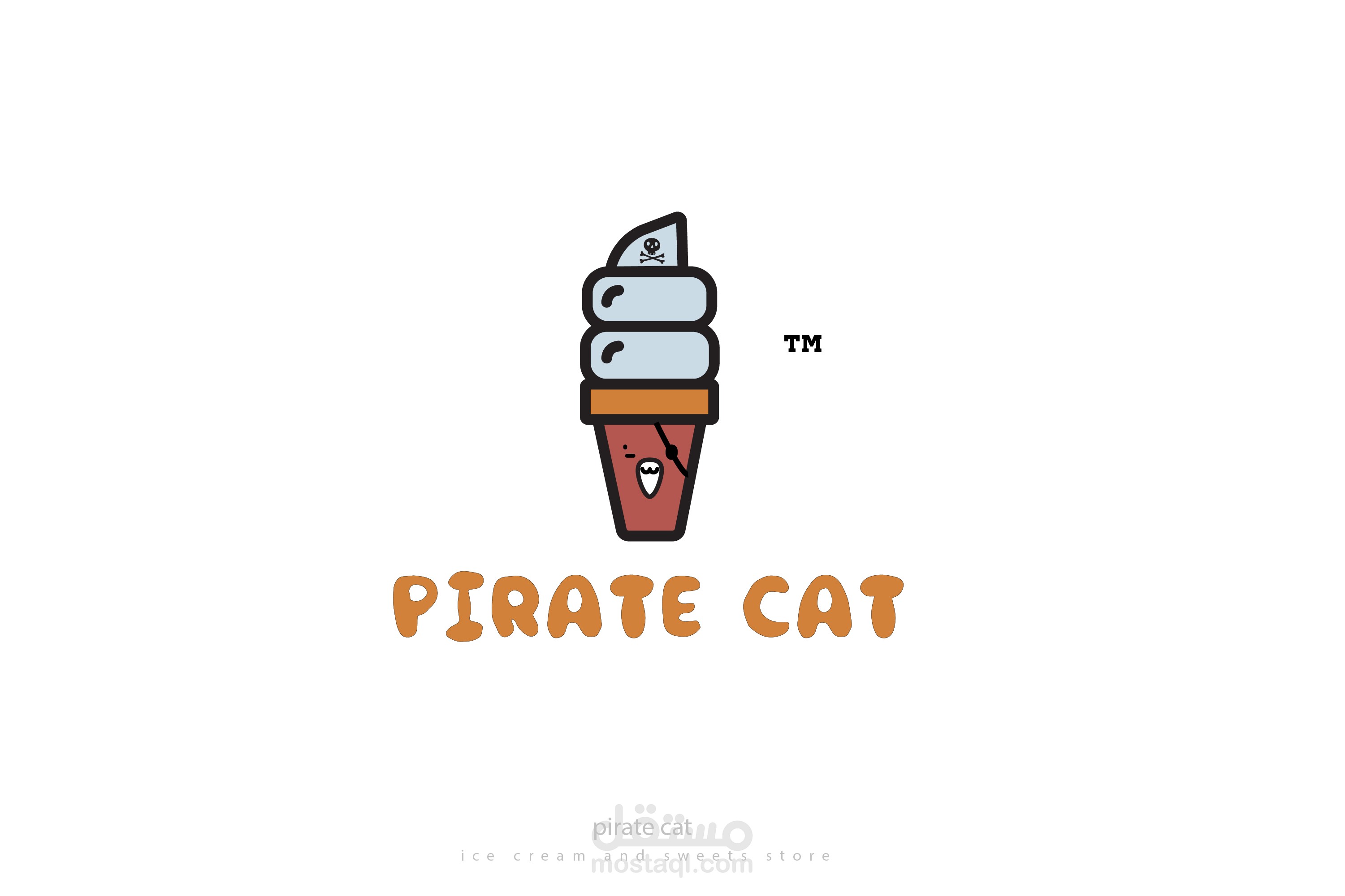 شعار لمتجر ايس كريم والمثلجات القط القرصان