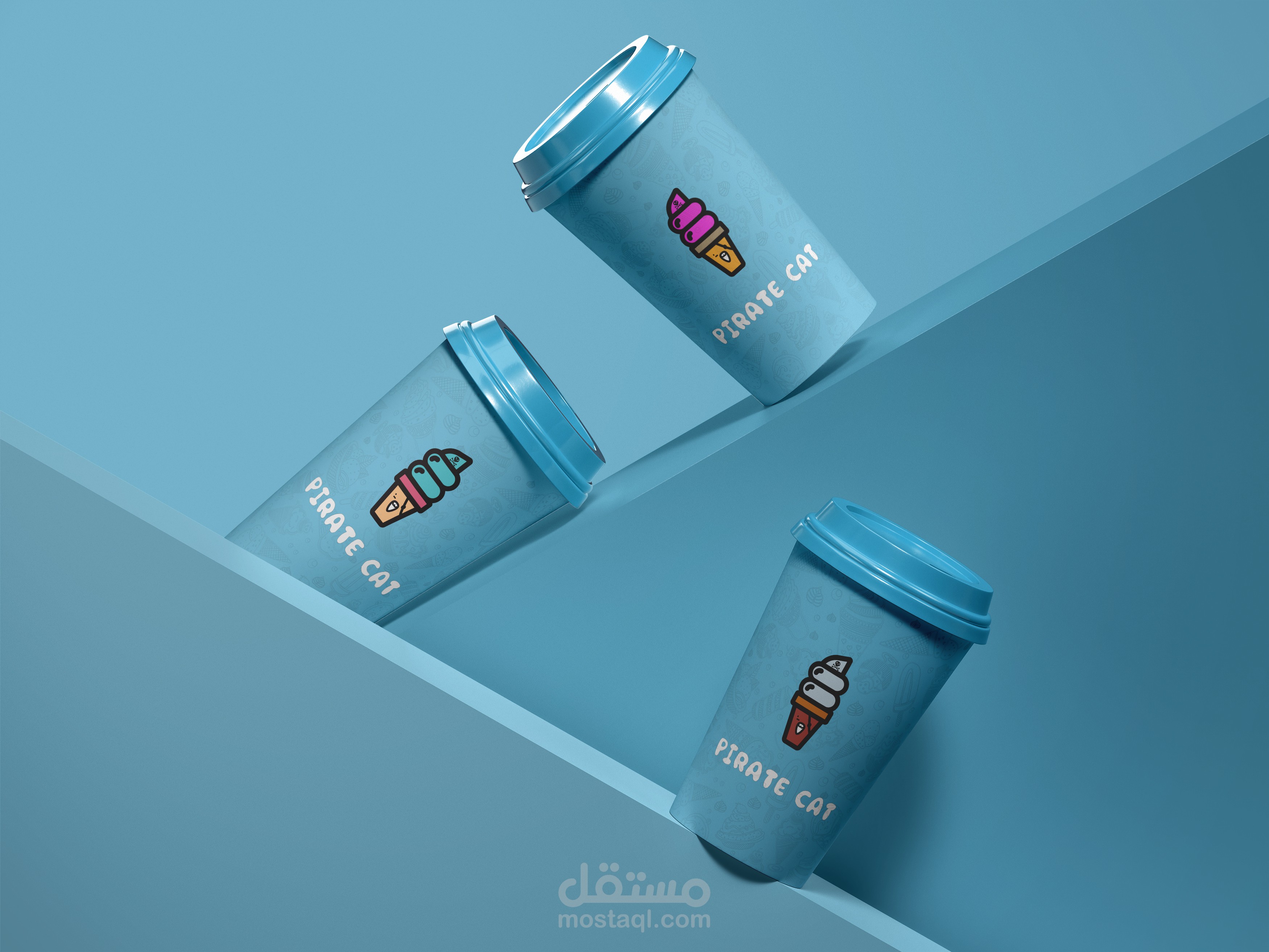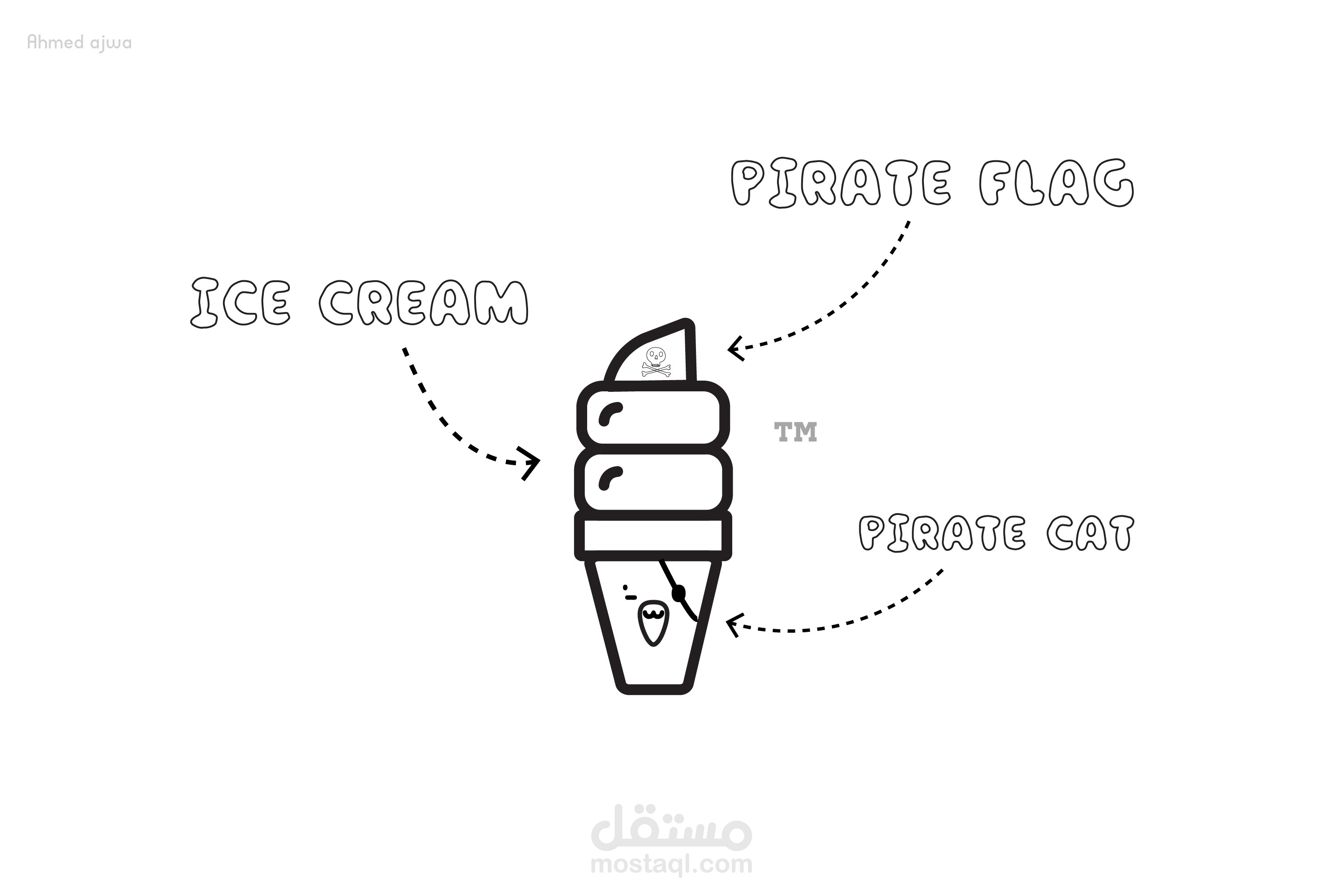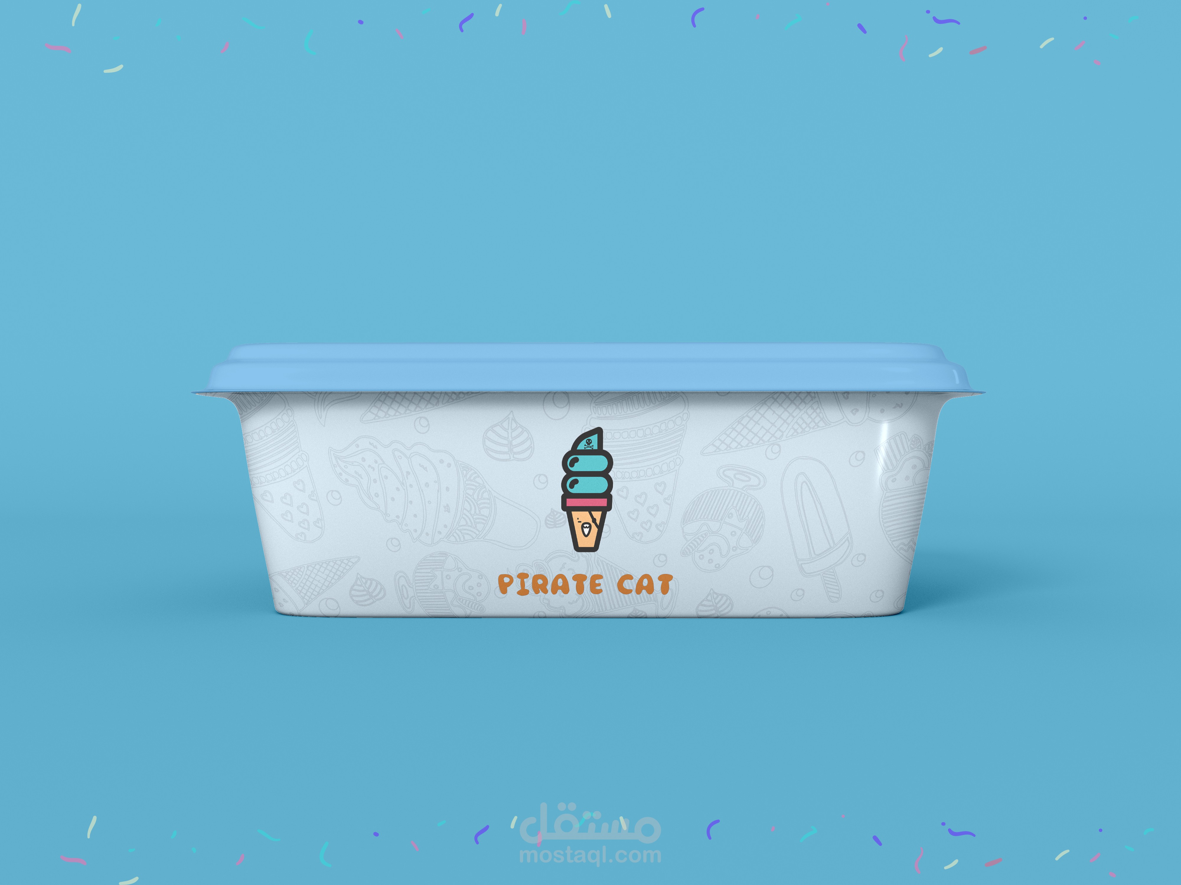 شعار لمتجر ايس كريم والمثلجات القط القرصان