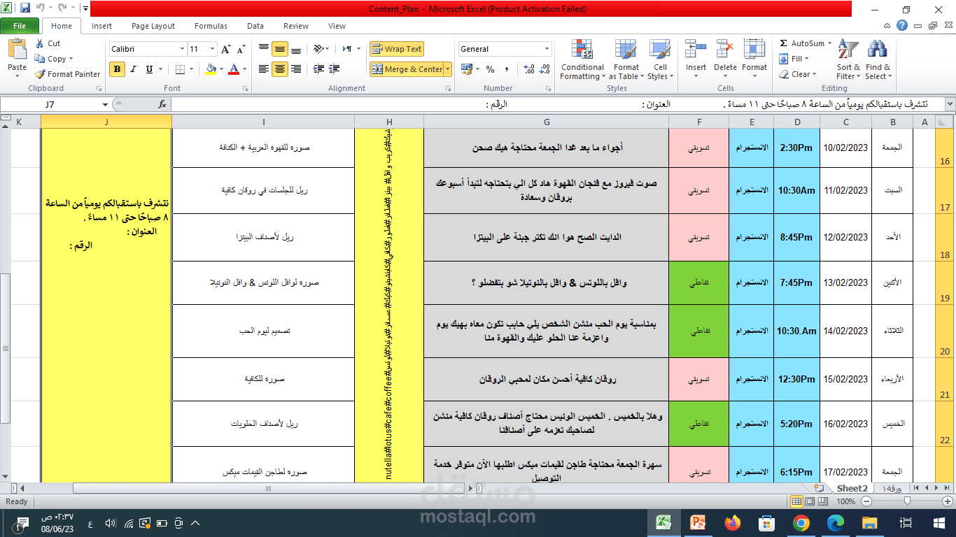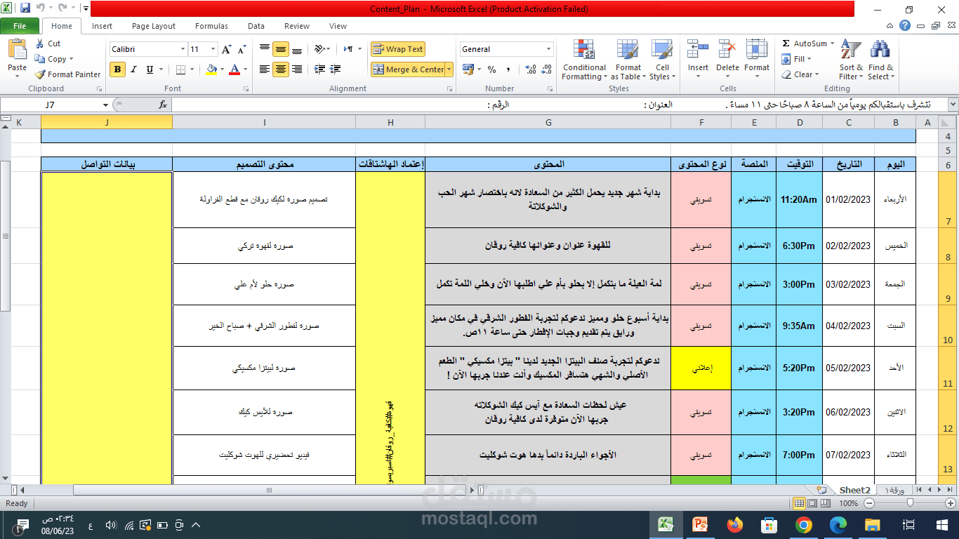 عمل خطة محتوى لصفحة كافية روقان على الانستجرام لشهر 2 .