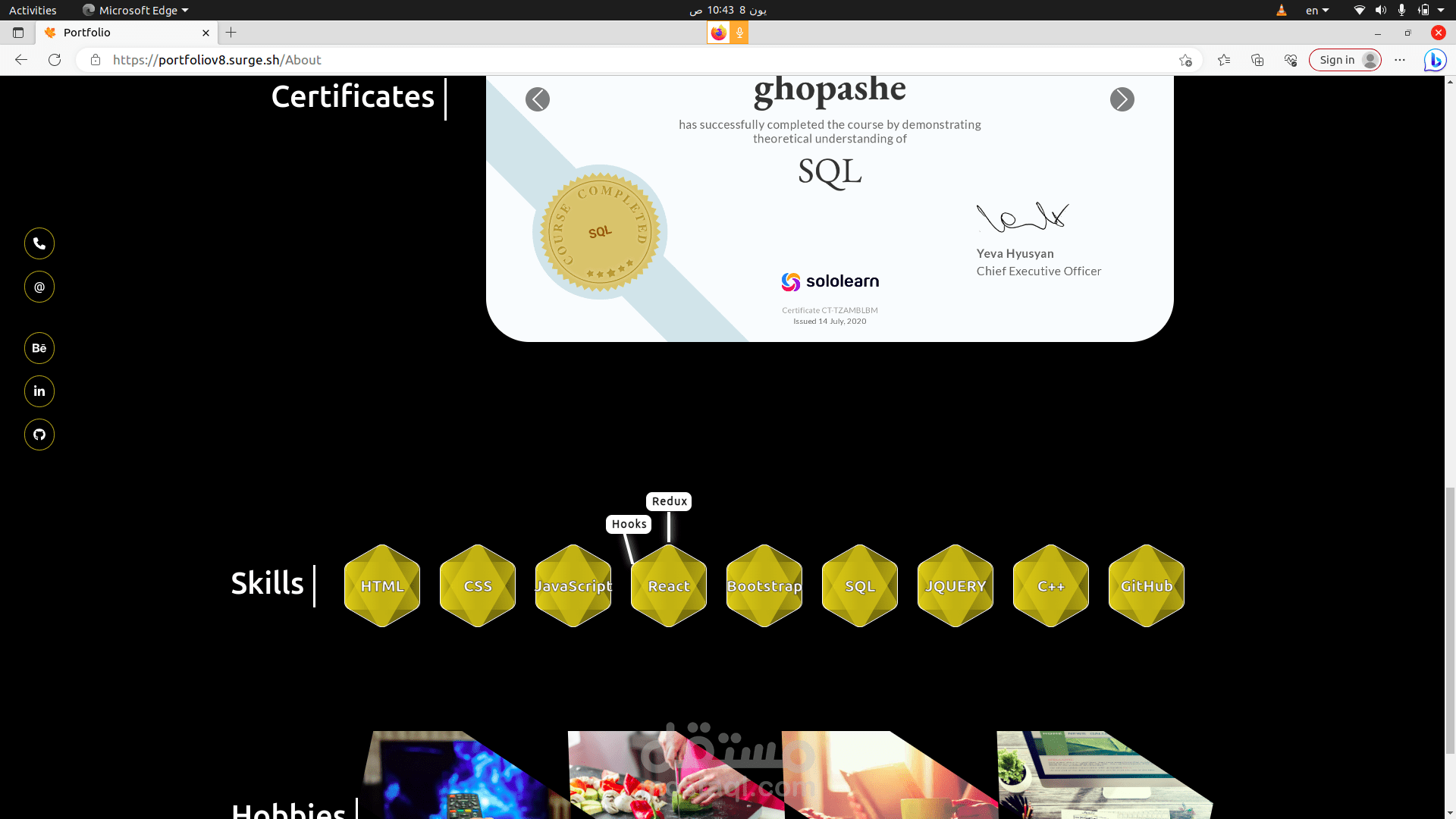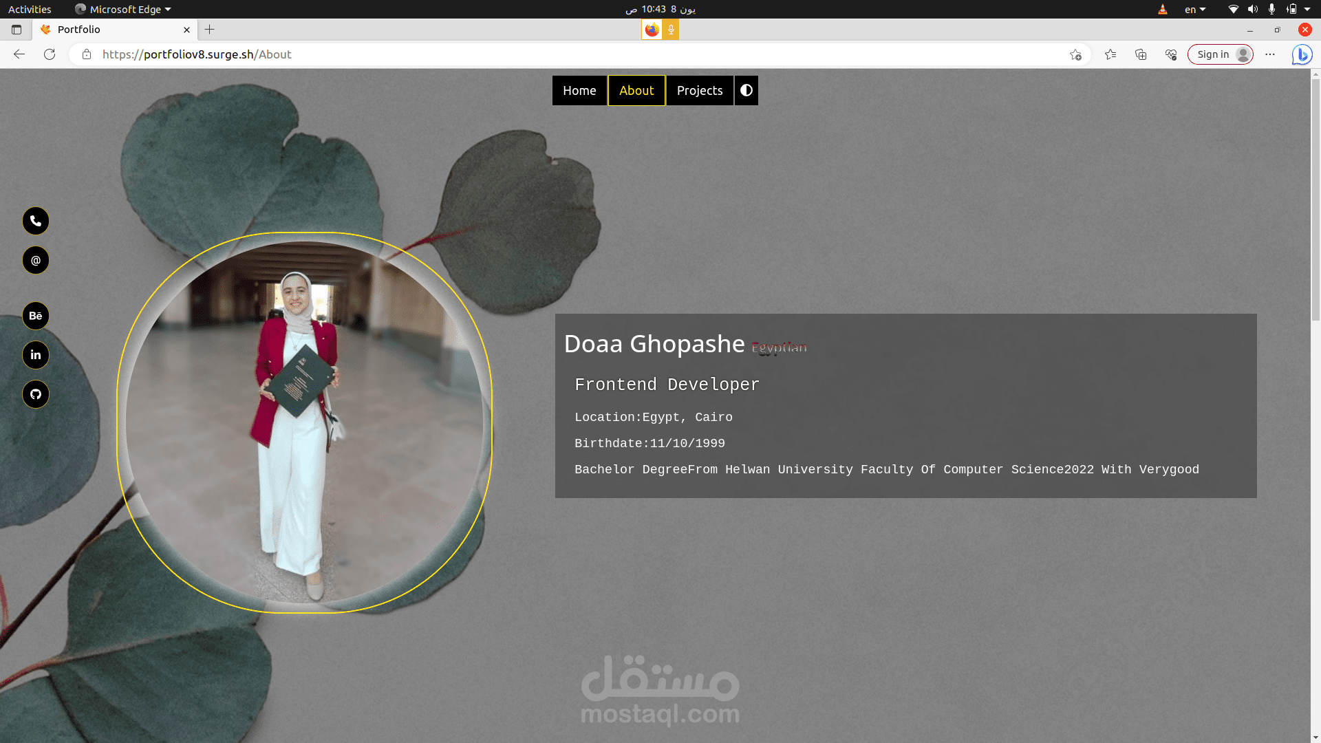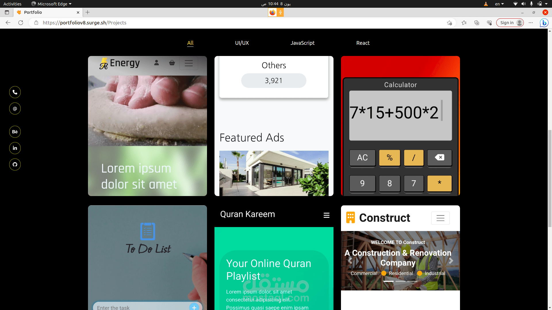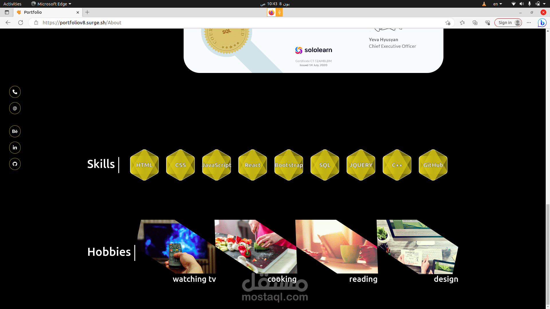 This is my portfolio,I use reactjs , bootstrap, Javascript ,HTML,CSSto create it