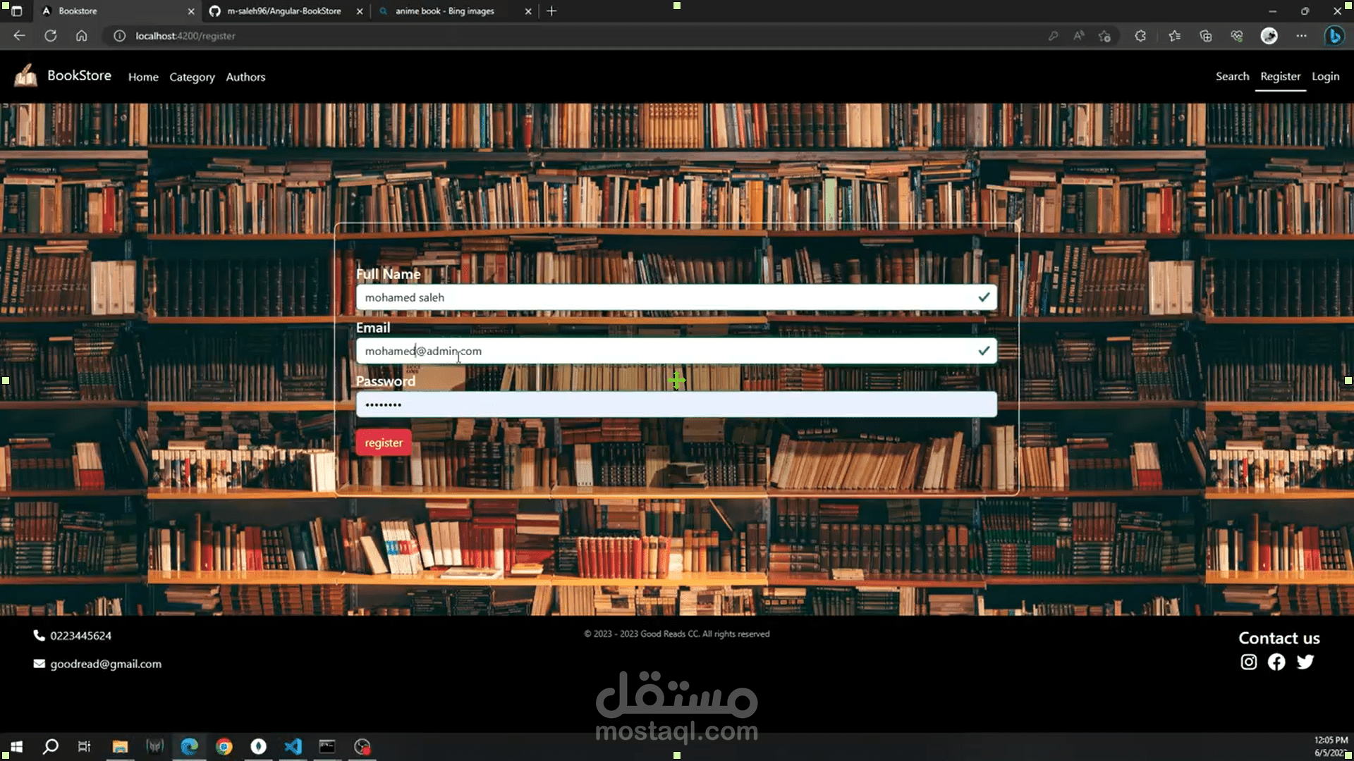 library using frontend with framework angular and backend with node.js contains images with multer