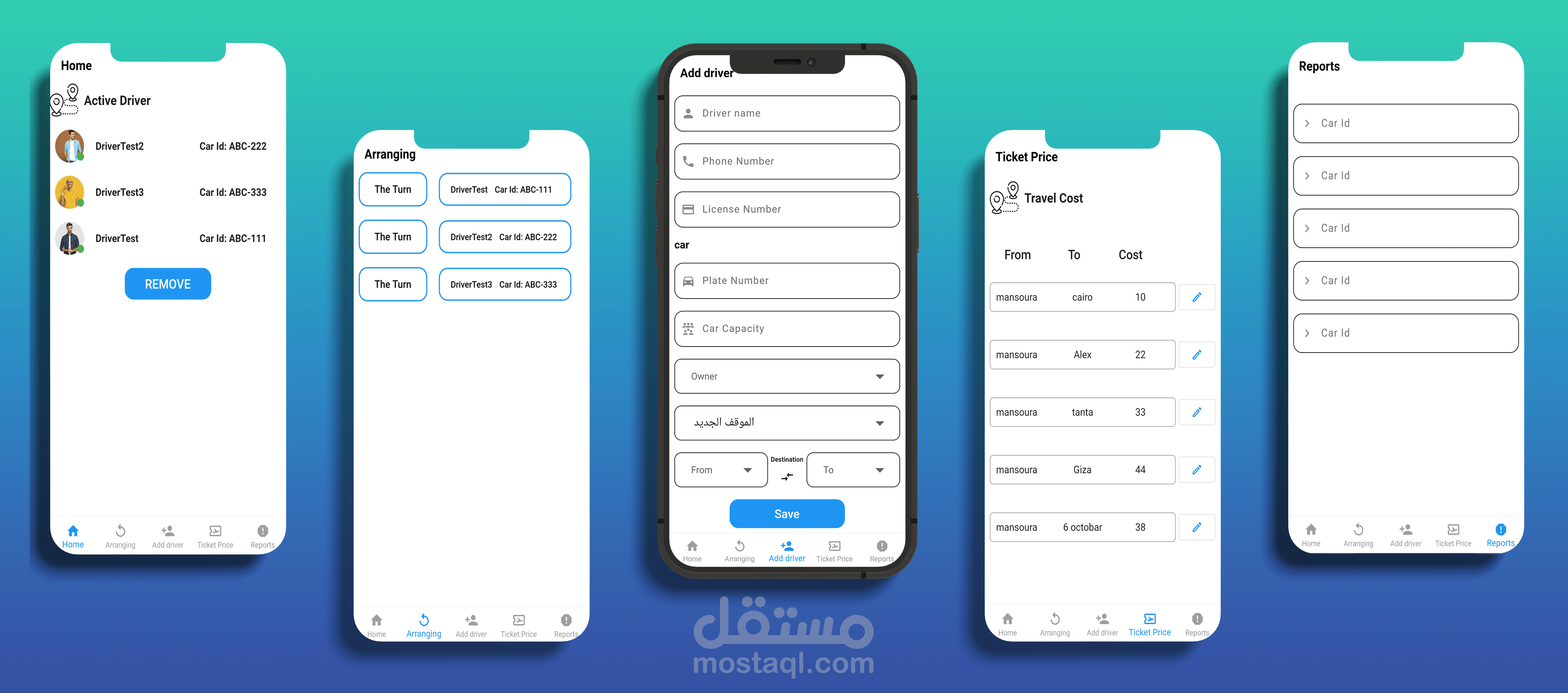 each driver, entering drivers' data, determining the itinerary, and determining the fare price for