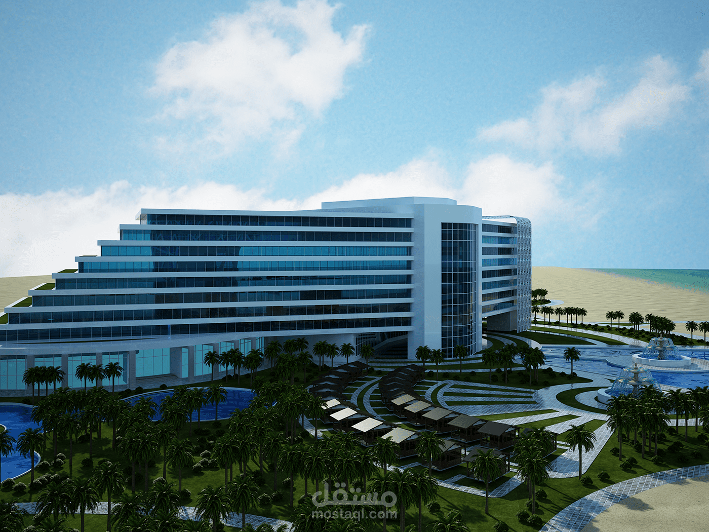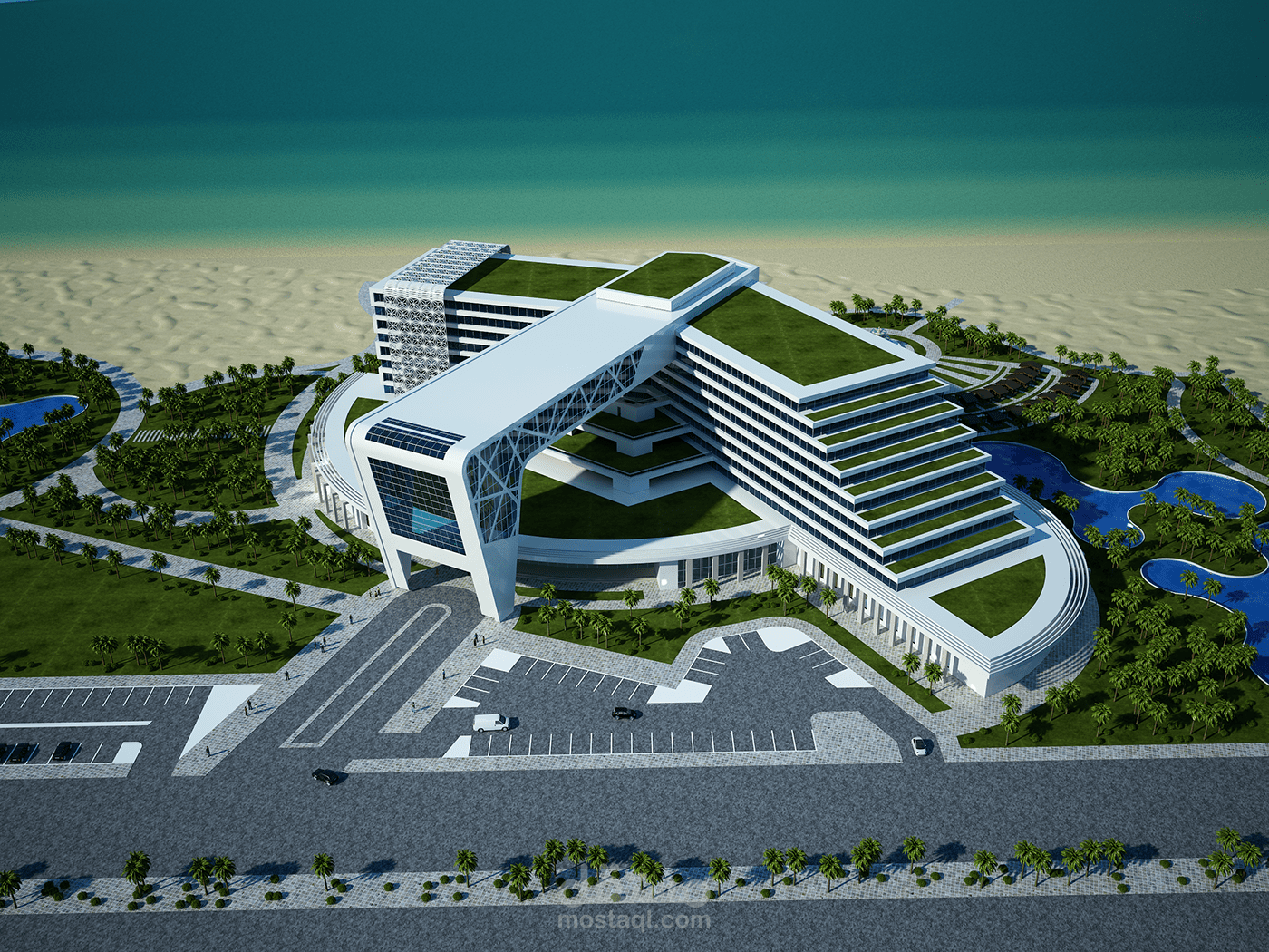 مشروع لمستوي خامس عماره five star sustainable hotel تم تصميم المشروع بدايه من concept و plan و 3d model و poster