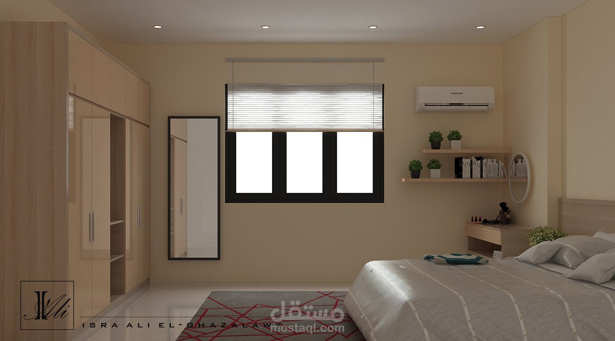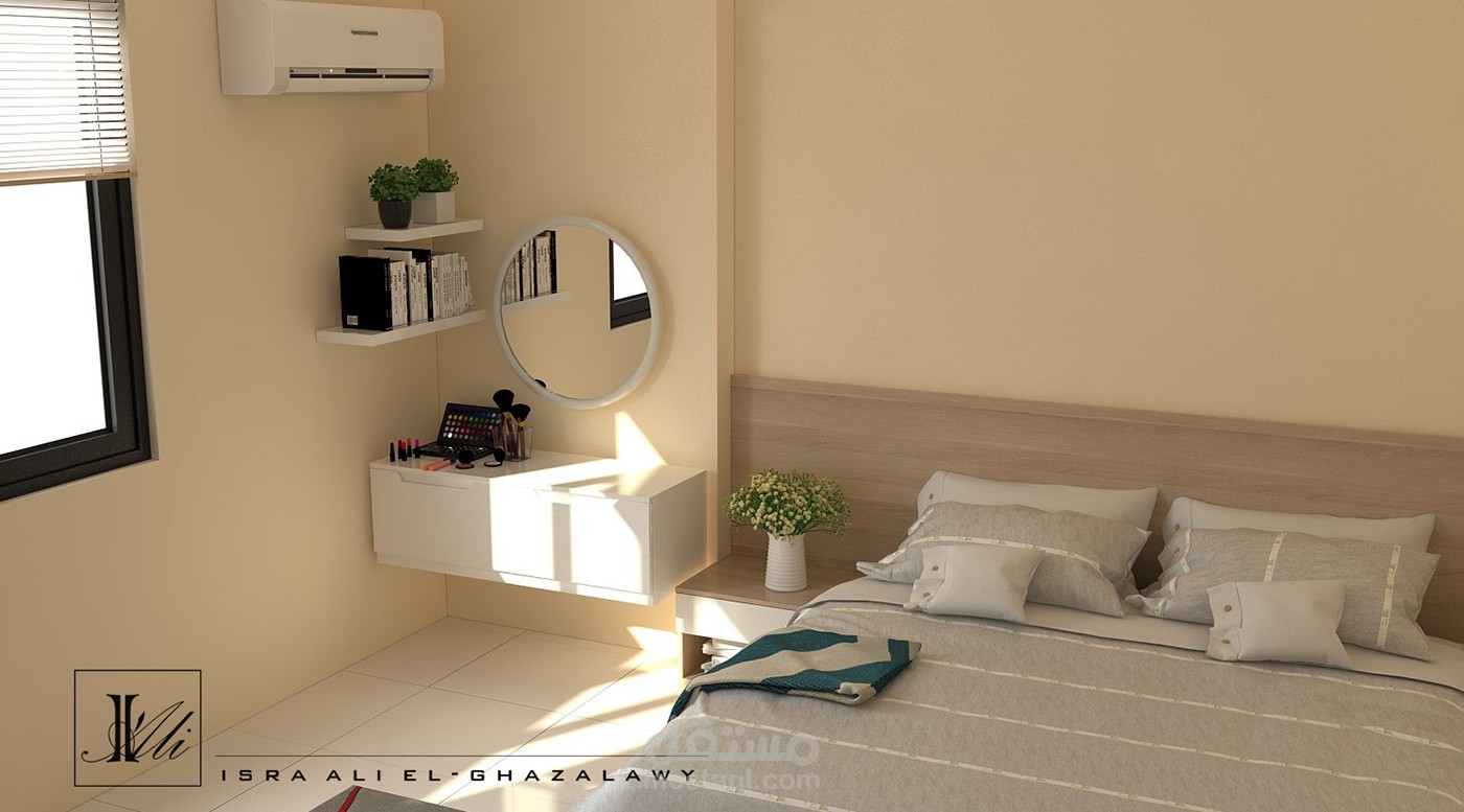 تصميم Bedroom لغرفه3.8*2 م بسيطه وتم تنفيذ white unit بالمرأه