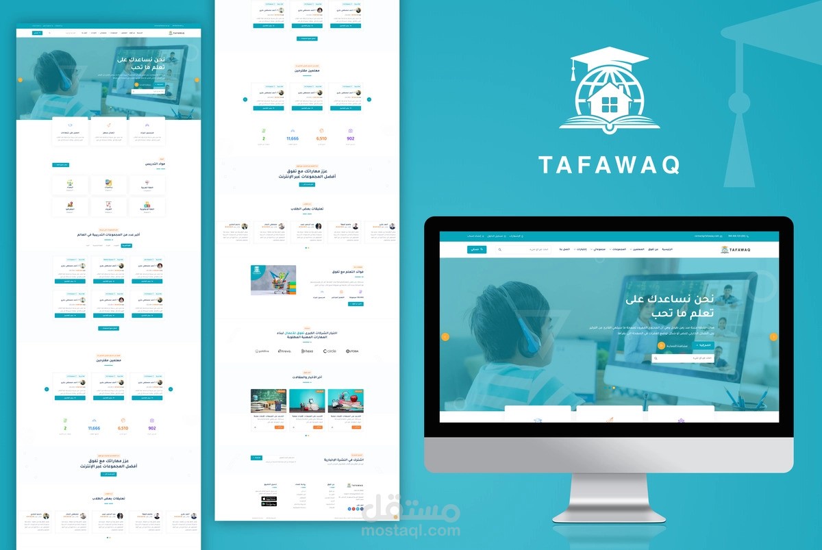 تصميم الوجهة الخارجية لموقع تفوق والموقع يقدم دورات عبر الإنترنت مع أنظمة خصم كاملة.
