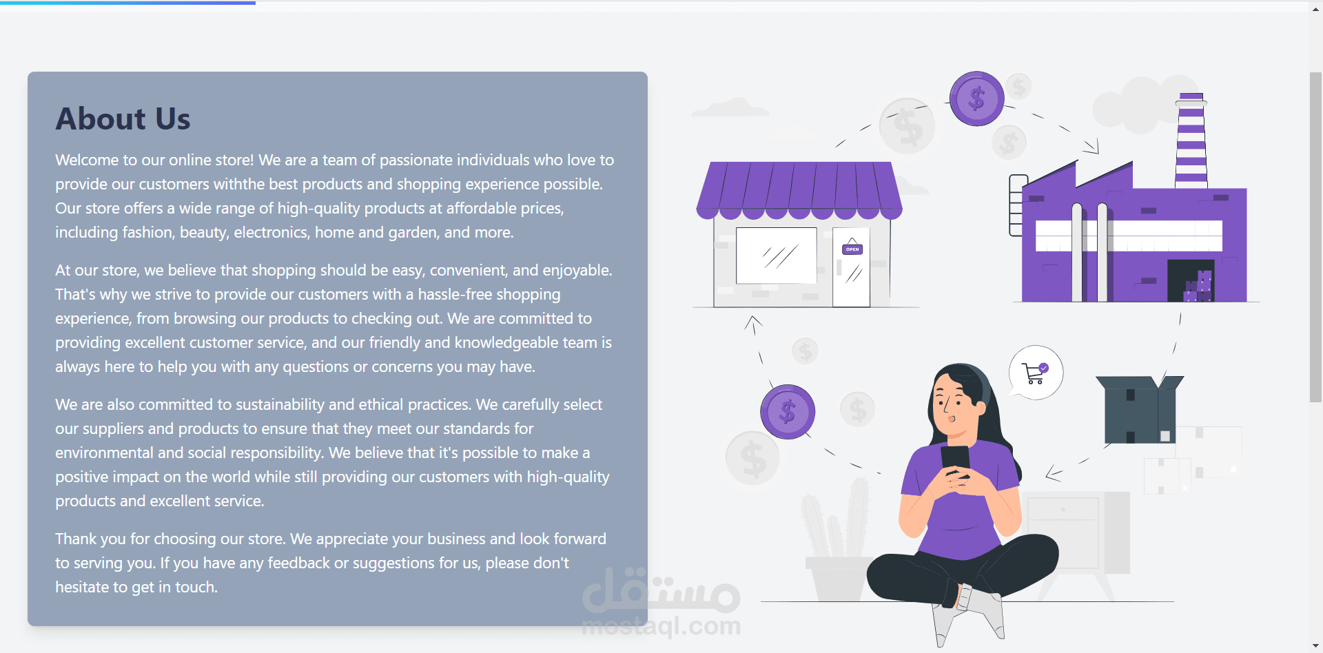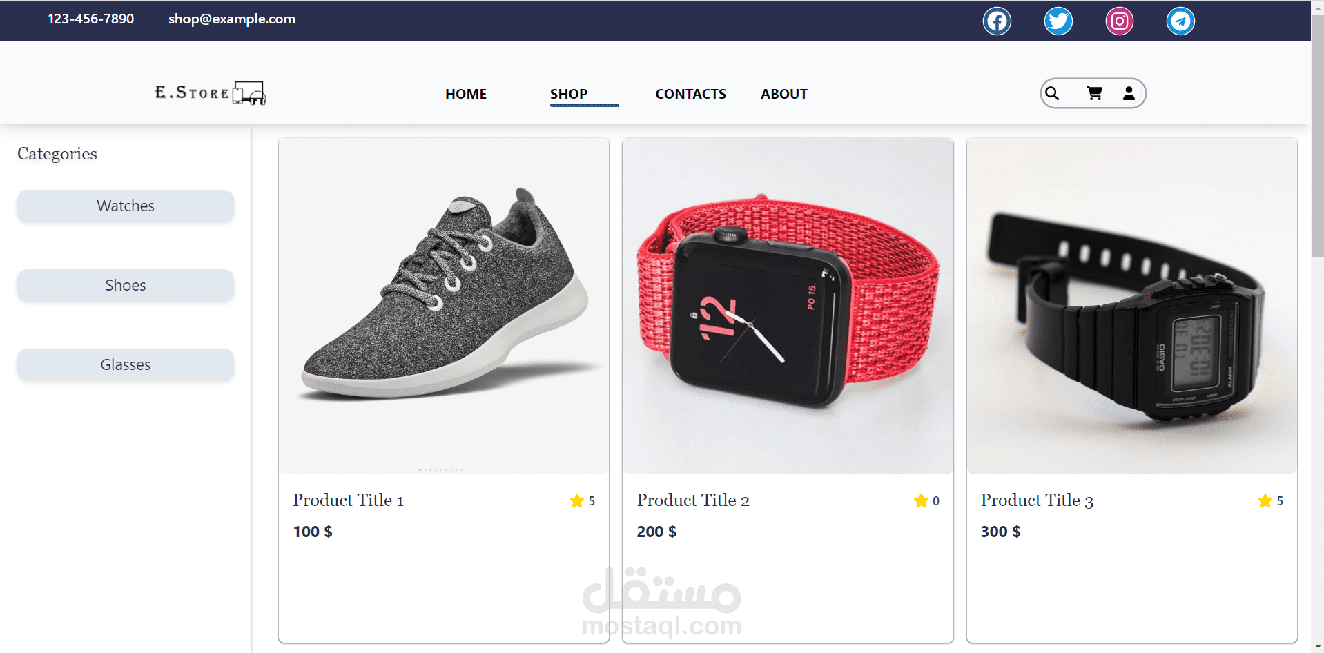 قمت ببنائه بتصميم و فكرة شخصية بغرض إضافة المزيد من الخبرة الى سيرتي الذاتية فالبيانات في الموقع ثابتة لكن يمكن تعديله ليكون متجر حقيقي